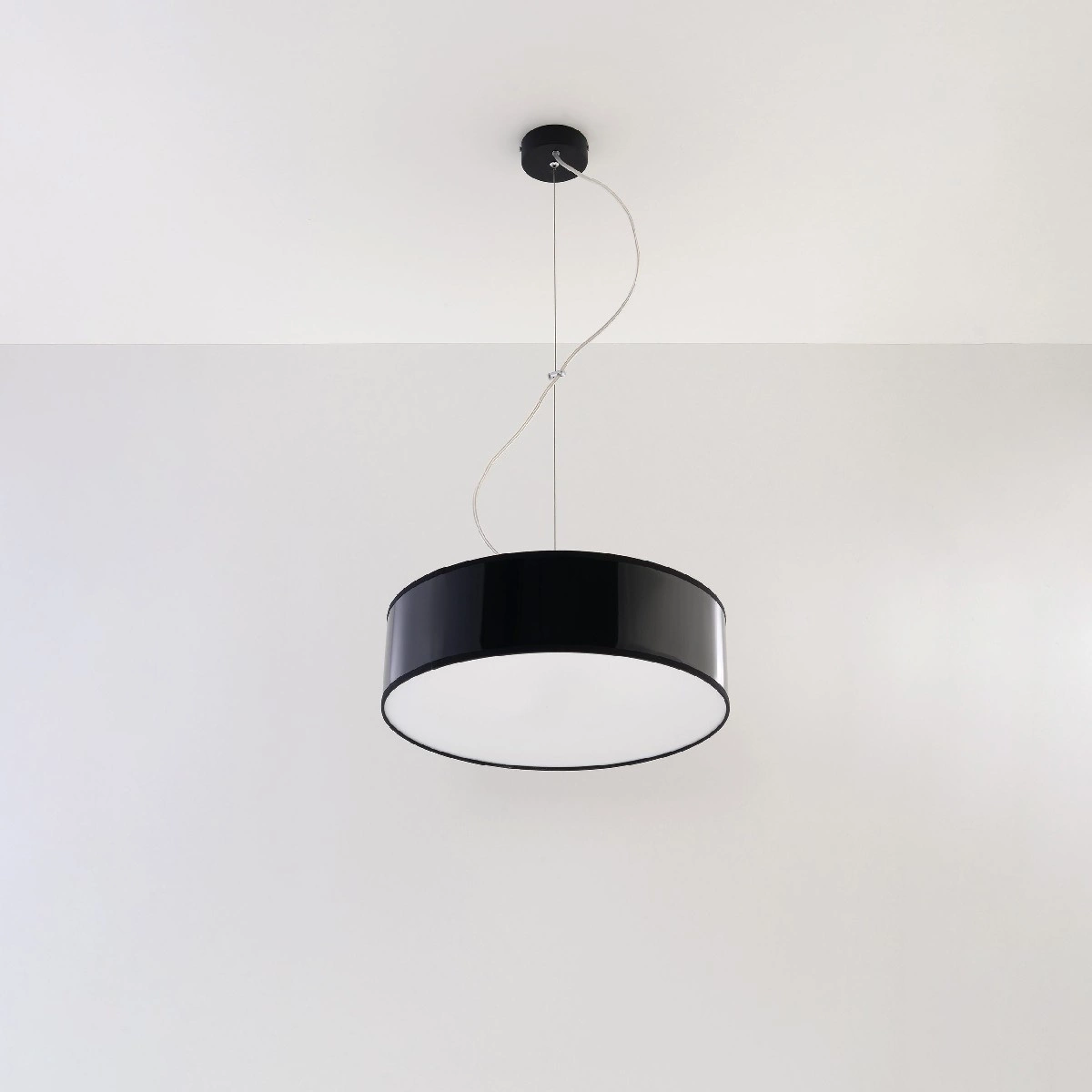 Toto elegantní závěsné stropní svítidlo má minimalistický design, který dokonale zapadne do moderních interiérů. Toto svítidlo je vyrobeno z odolných materiálů a je vybaveno dvěma paticemi E27, takže se snadno přizpůsobí různým zdrojům světla. Její kruhový tvar a černě dokončený plášť jí dodávají nadčasový šarm, takže se stane nejen funkčním, ale i dekorativním prvkem každé místnosti.