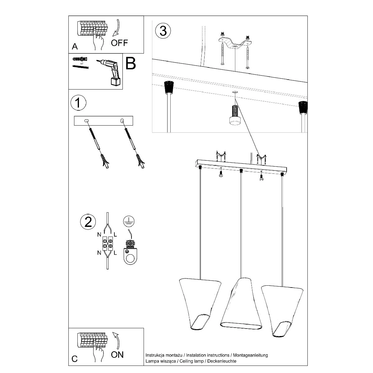 LED závěsné stropní svítidlo BLUM 3xE27 Lustr černý SOLLUX