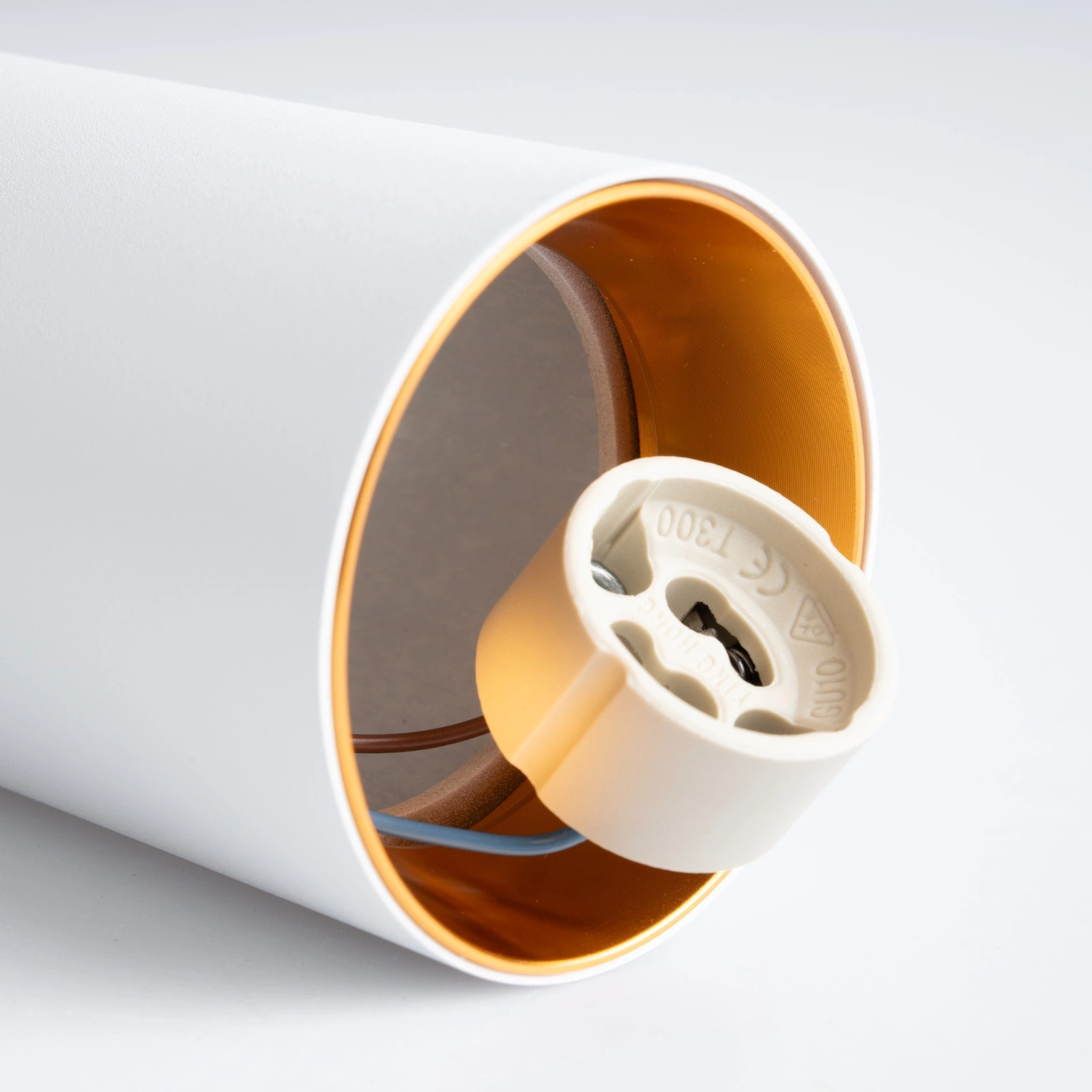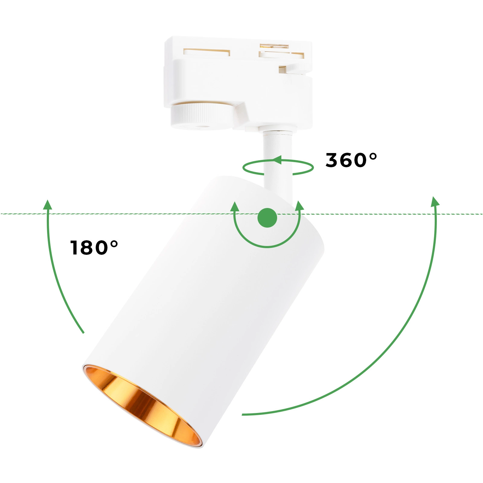 Kolejnicové bodové svítidlo v bílé a zlaté barvě , vyrobené z vysoce kvalitní hliníkové slitiny. Reflektor, svítilna určená pro montáž na lištu, s možností montáže libovolné žárovky se závitem GU10 o maximálním výkonu nepřesahujícím 30W. Lampa pracuje na jednofázových přípojnicích. Díky použití kolejnic můžeme ovládat osvětlení v místnosti v závislosti na našich aktuálních predispozicích.