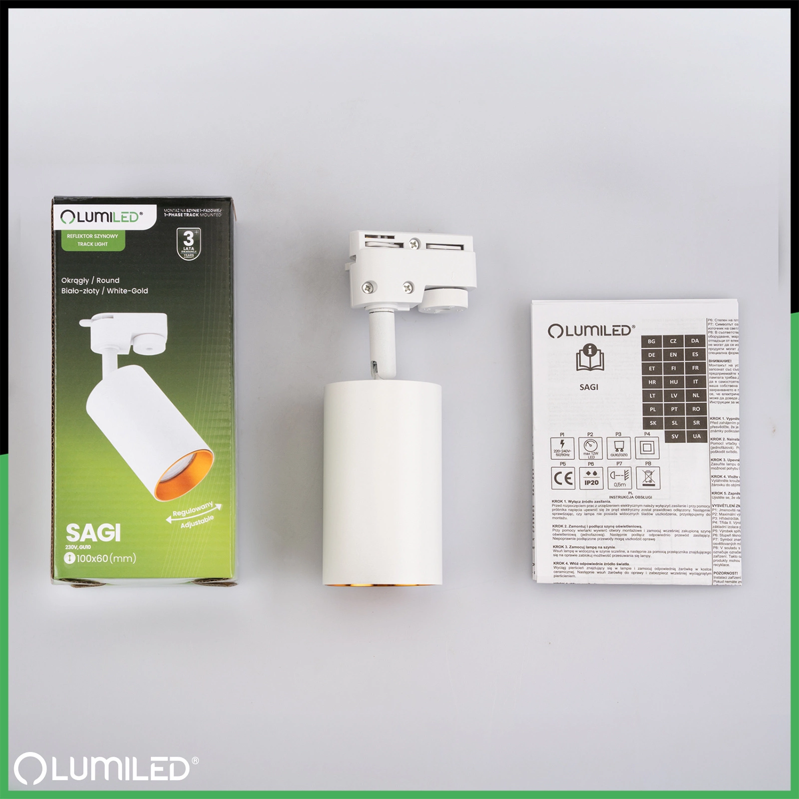 GU10 Track Light White - Gold Lampa SAGI pro jednofázové koleje