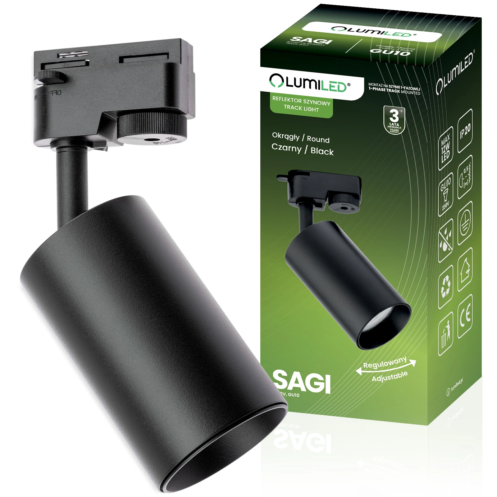 GU10 Black Track Spotlight Lampa SAGI pro jednofázové koleje