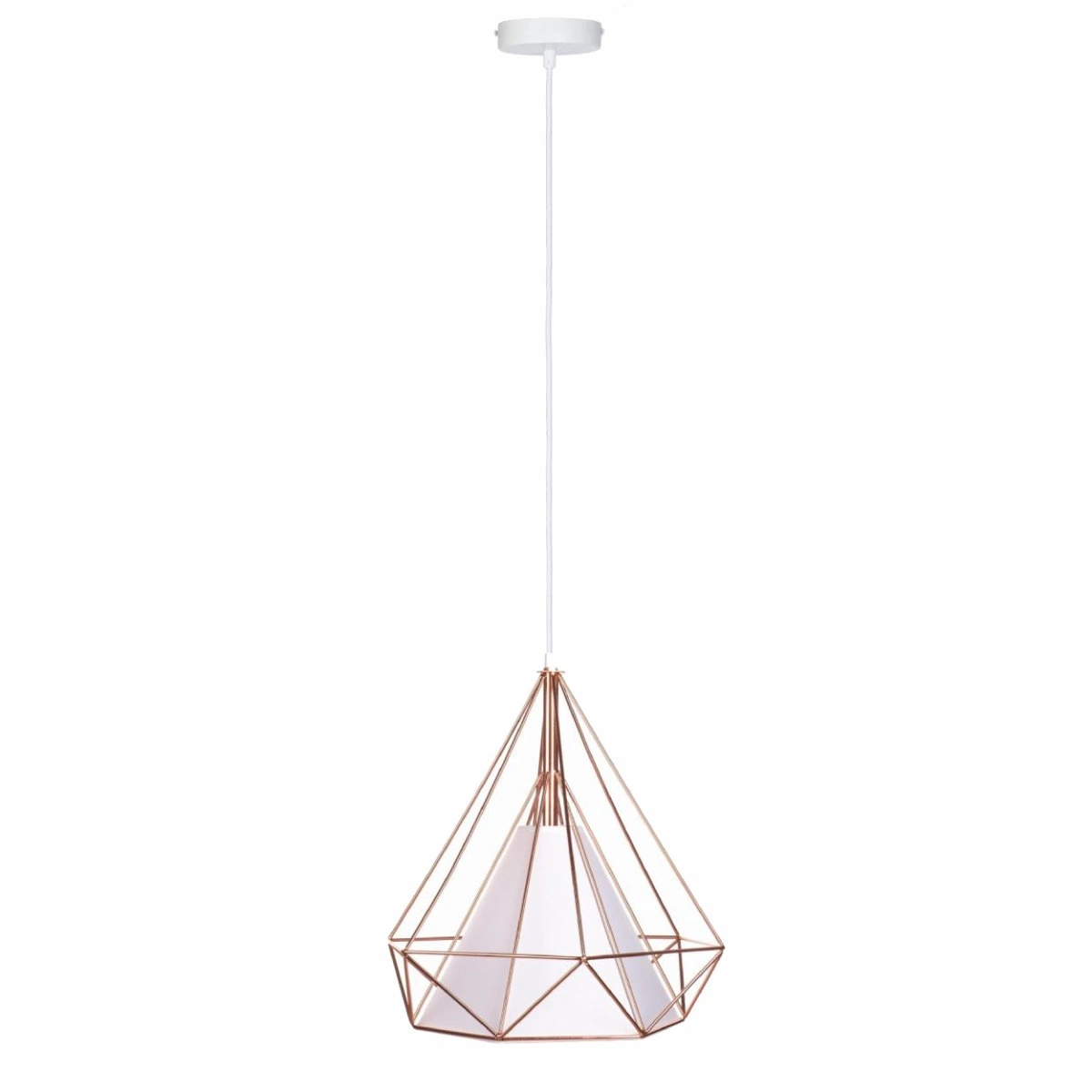 Průmyslový model závěsná lampa s jediným světelným zdrojem ve tvaru ažurového diamantu dodá vašemu interiéru originální a jedinečný nádech. Díky tomu, že lampa má integrované matné bílé stínidlo umístěné uvnitř drátěného stínidla, vyzařované světlo neoslňuje, ale jemně proniká do místnosti. Jedinečná kombinace růžového zlata s geometrickým tvarem stínidla činí celou lampu velmi stylovou a elegantní. Svítidlo nabízí možnost vytvořit individuální design interiéru. Tento lampa je ideálním produktem pro každého, kdo si chce vyzdobit svůj domov jedinečným a netradičním doplňkem, který podtrhne originální a avantgardní design interiéru. Skvěle vypadá v industriálních, minimalistických a moderních místnostech