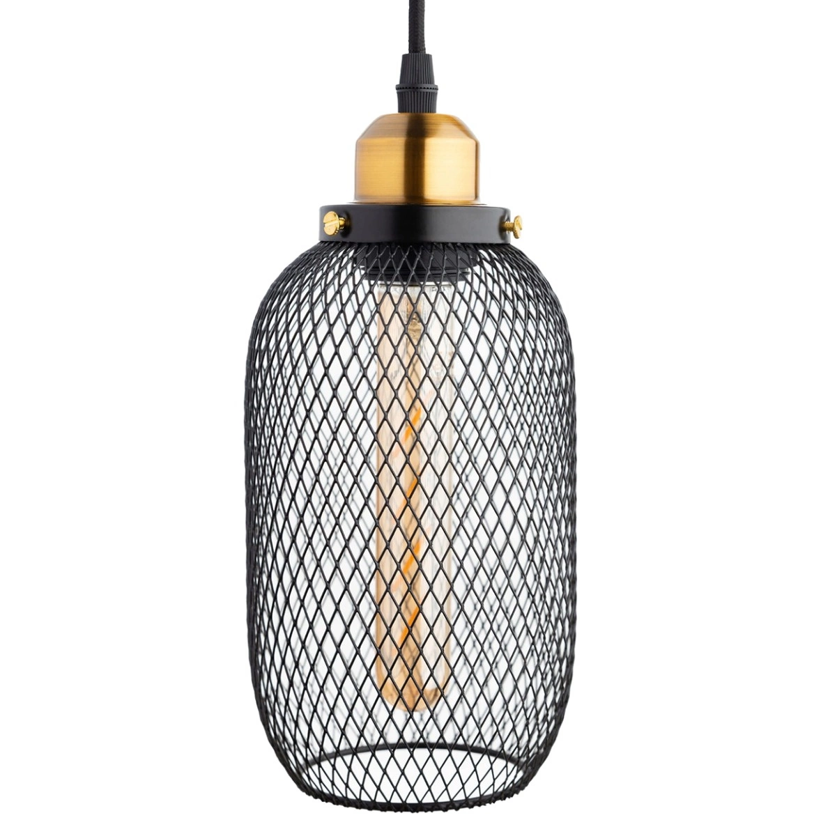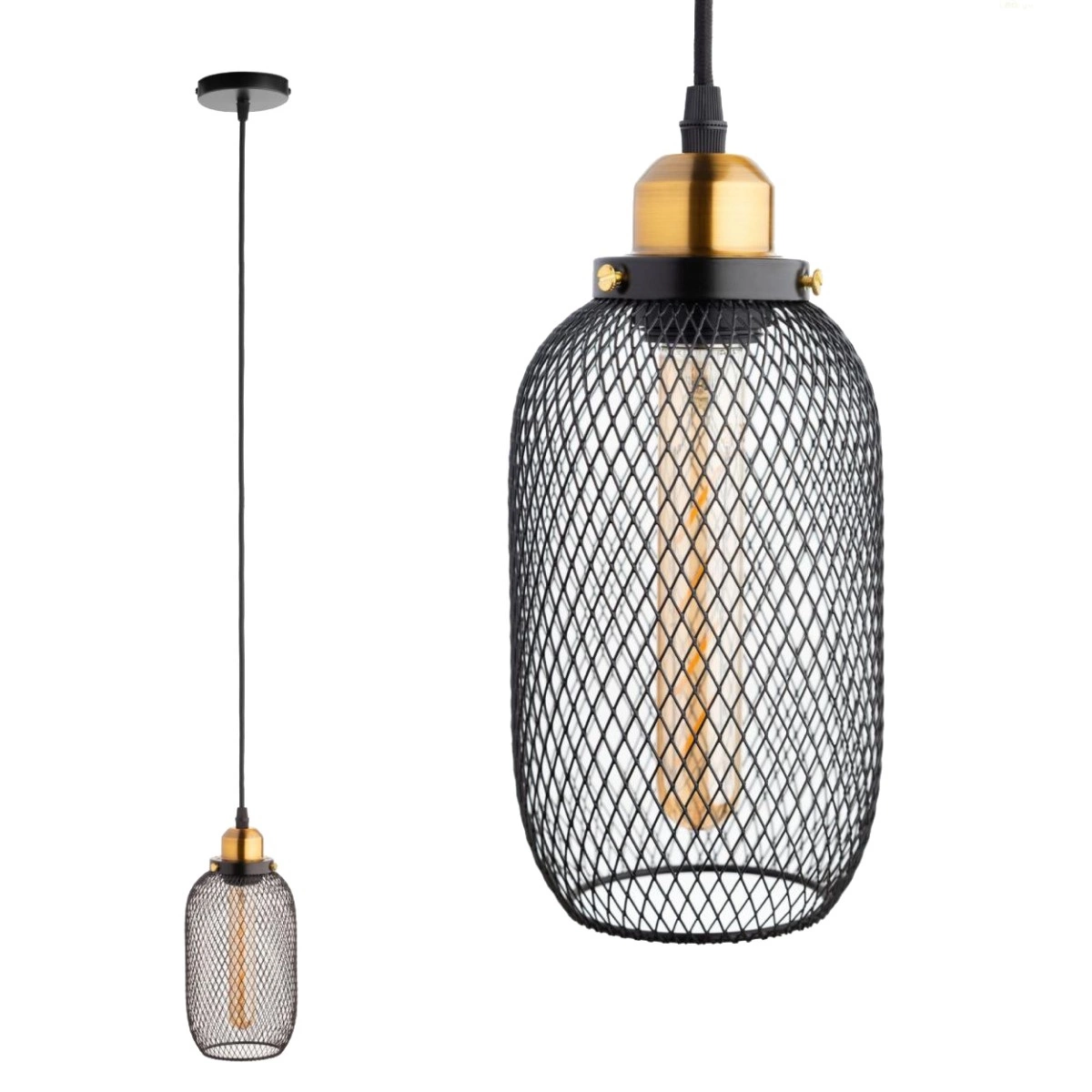 Loftový model závěsného svítidla z kovové síťoviny dodá vašemu interiéru syrový a jedinečný charakter. Jedinečná kombinace černé s podlouhlým, prolamovaným tvarem činí celé svítidlo velmi stylovým a elegantním. Zlaté doplňky dodávají lampě mimořádnou eleganci. Vyzařované světlo výjimečně pronikne kovovou síťovinou a vrhne teplou záři na celou místnost. Vynikajícího efektu lze dosáhnout složením této lampy s dalšími lampami z této řady a instalací dekorativní žárovky s viditelným dekorativním vláknem do lampy. Tato lampa je perfektním produktem pro každého, kdo si chce vyzdobit svůj byt jedinečným a netradičním doplňkem, který podtrhne originální a avantgardní design interiéru. Vypadá skvěle v místnostech zařízených v industriálním a moderním stylu