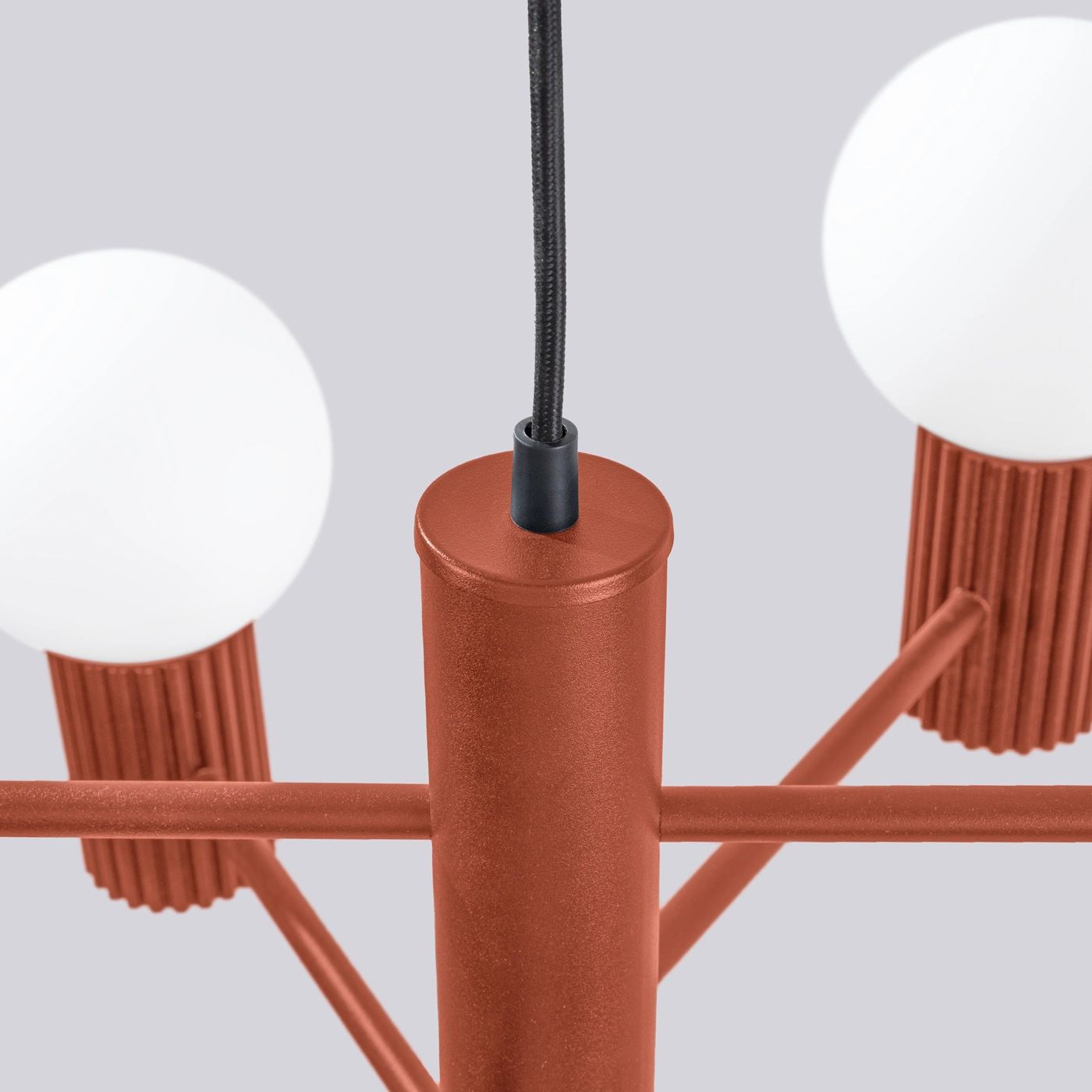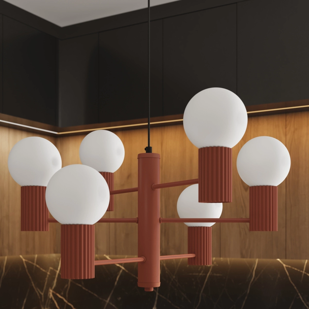 Objevte nezaměnitelnou krásu našeho závěsného svítidla Halo, které dokáže proměnit každý interiér ve skutečné umělecké dílo. Její impozantní design s červeným hliníkovým rýhovaným tělem a matnou mléčnou koulí je synonymem elegance a modernosti. Design této lampy přitahuje pozornost a dodává interiéru jedinečný charakter, který se dokonale hodí do obývacího pokoje, ložnice, jídelny, kuchyně nebo chodby.