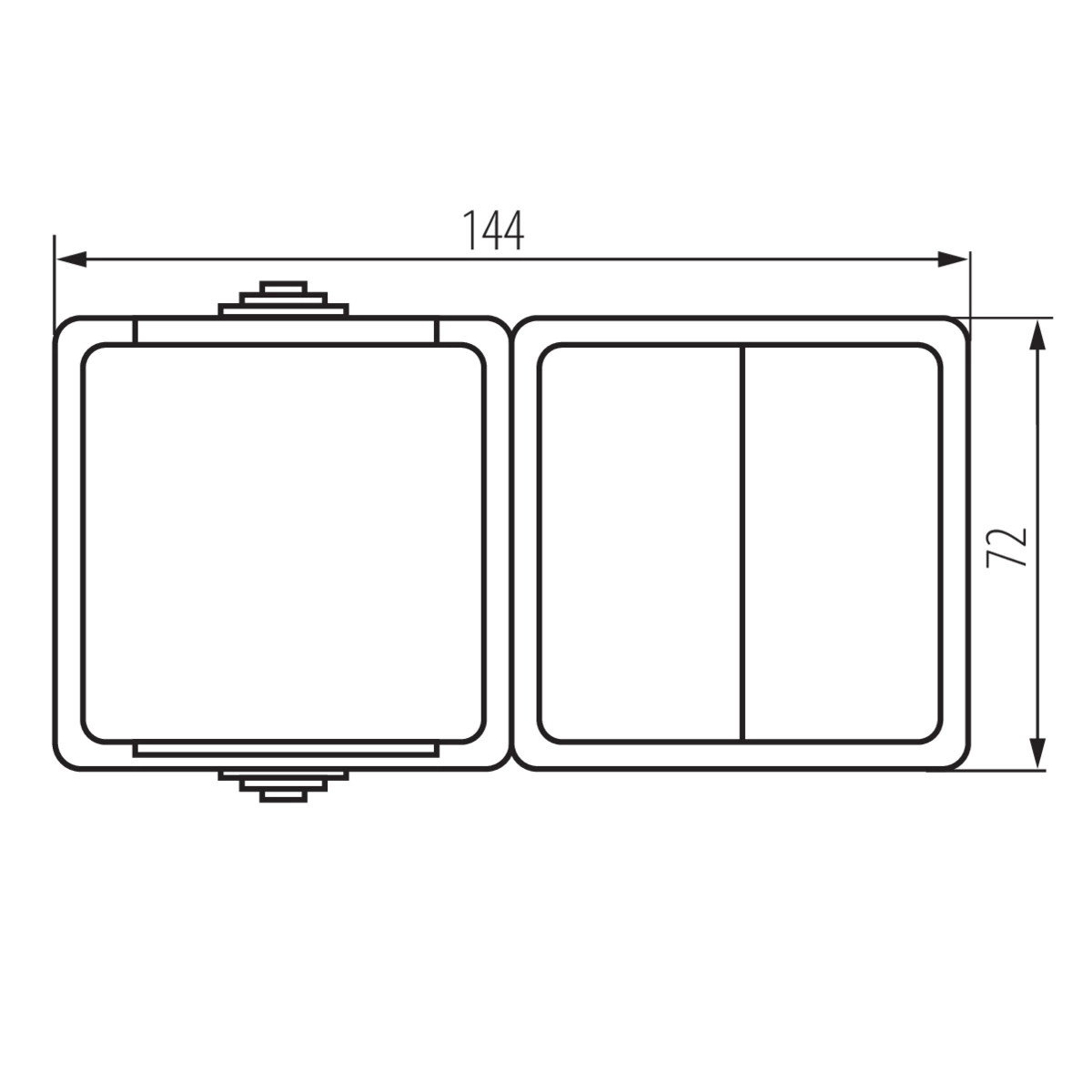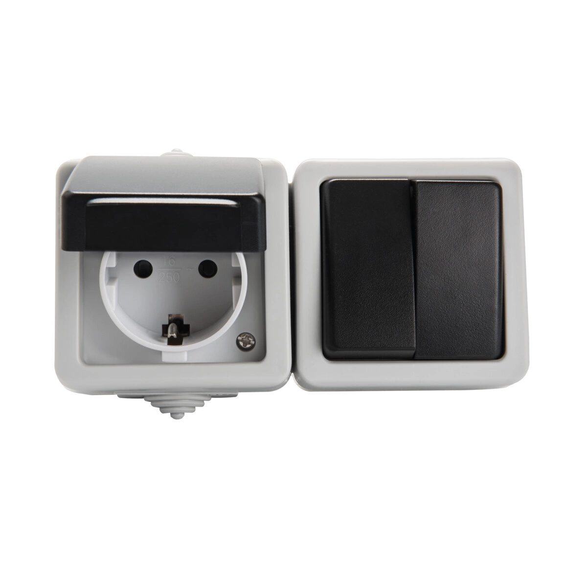Obdélníkový vypínač je navržen v univerzální šedé barvě a snadno zapadne do každého interiéru. Díky stupni krytí IP54 je odolný proti prachu a stříkající vodě, což z něj činí nepostradatelnou součást i v drsnějších venkovních podmínkách.