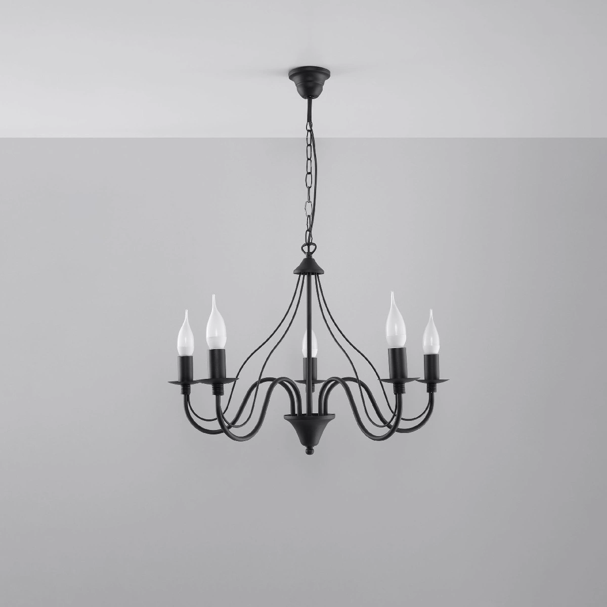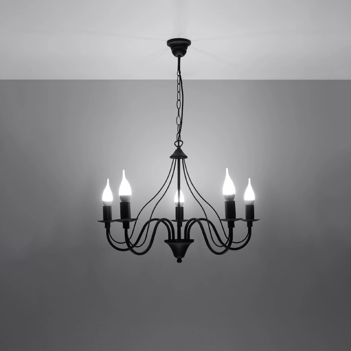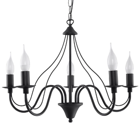 Objevte moderní a elegantní design závěsného stropního svítidla Sollux Minerwa, které dodá každému interiéru jedinečnost. Svítidlo se vyznačuje nepravidelným tvarem a klasickou černou barvou, díky čemuž je dokonalým doplňkem moderního prostředí. Umožňuje osazení až 5 žárovek typu E14, které zajistí optimální osvětlení prostoru.