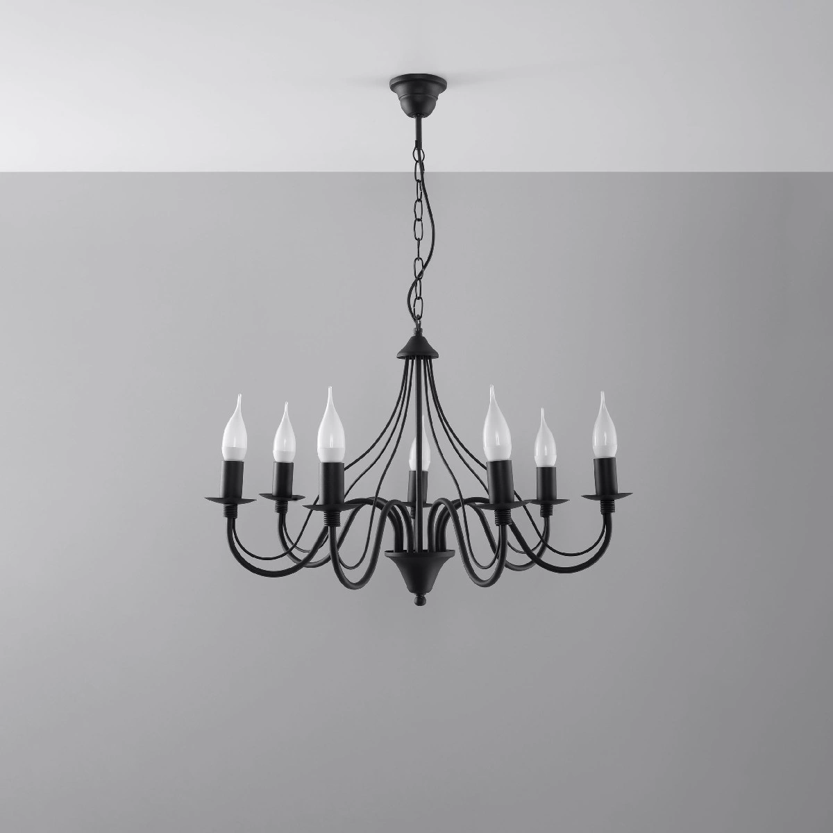 Objevte moderní design se závěsným stropním svítidlem Minerwa od společnosti Sollux. Svítidlo se vyznačuje nepravidelným tvarem v černé barvě, který se skvěle hodí do moderních interiérů. Je vybaveno 7 úchyty pro žárovky E14 a poskytuje dokonalé osvětlení každé místnosti, které dodá eleganci a styl.