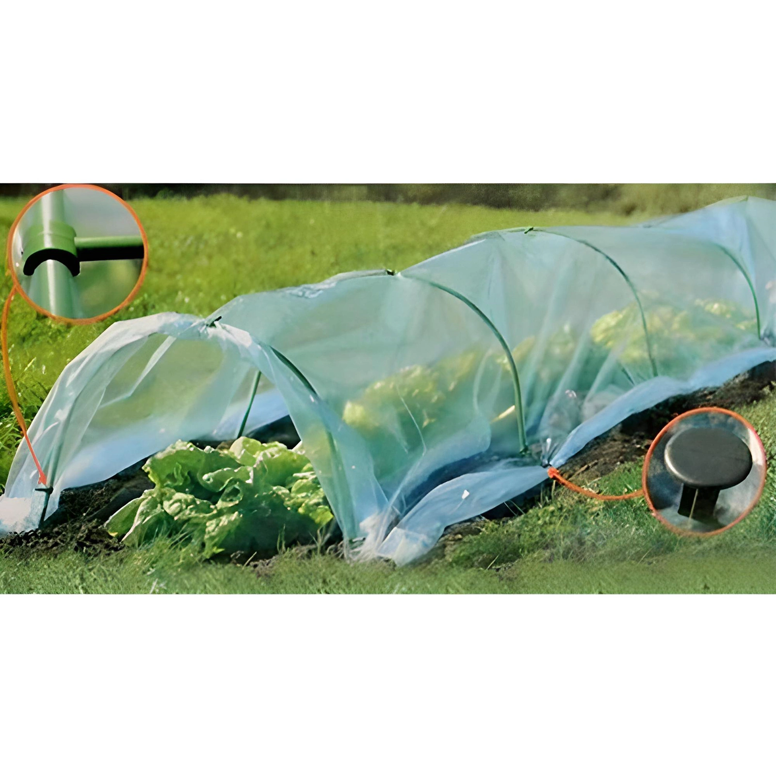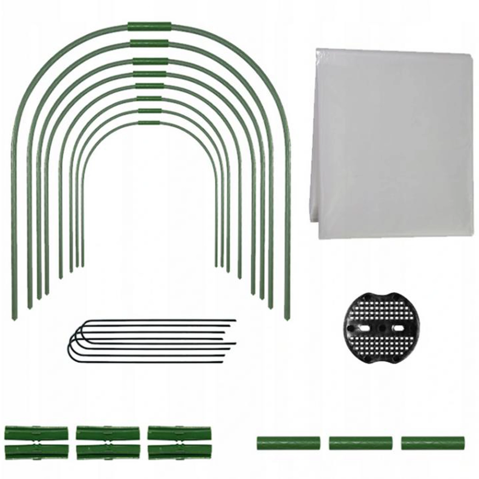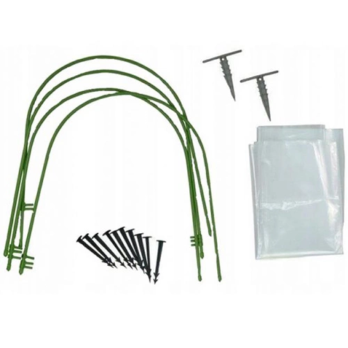 Fólie je vyrobena z odolného, pevného a odolného plastu. Snadná a rychlá instalace tunelu umožňuje rychle využívat výhod jeho použití. Tunel je možné demontovat a rostliny ponechat bez krytu. Všechny potřebné prvky obsažené v sadě jsou :
