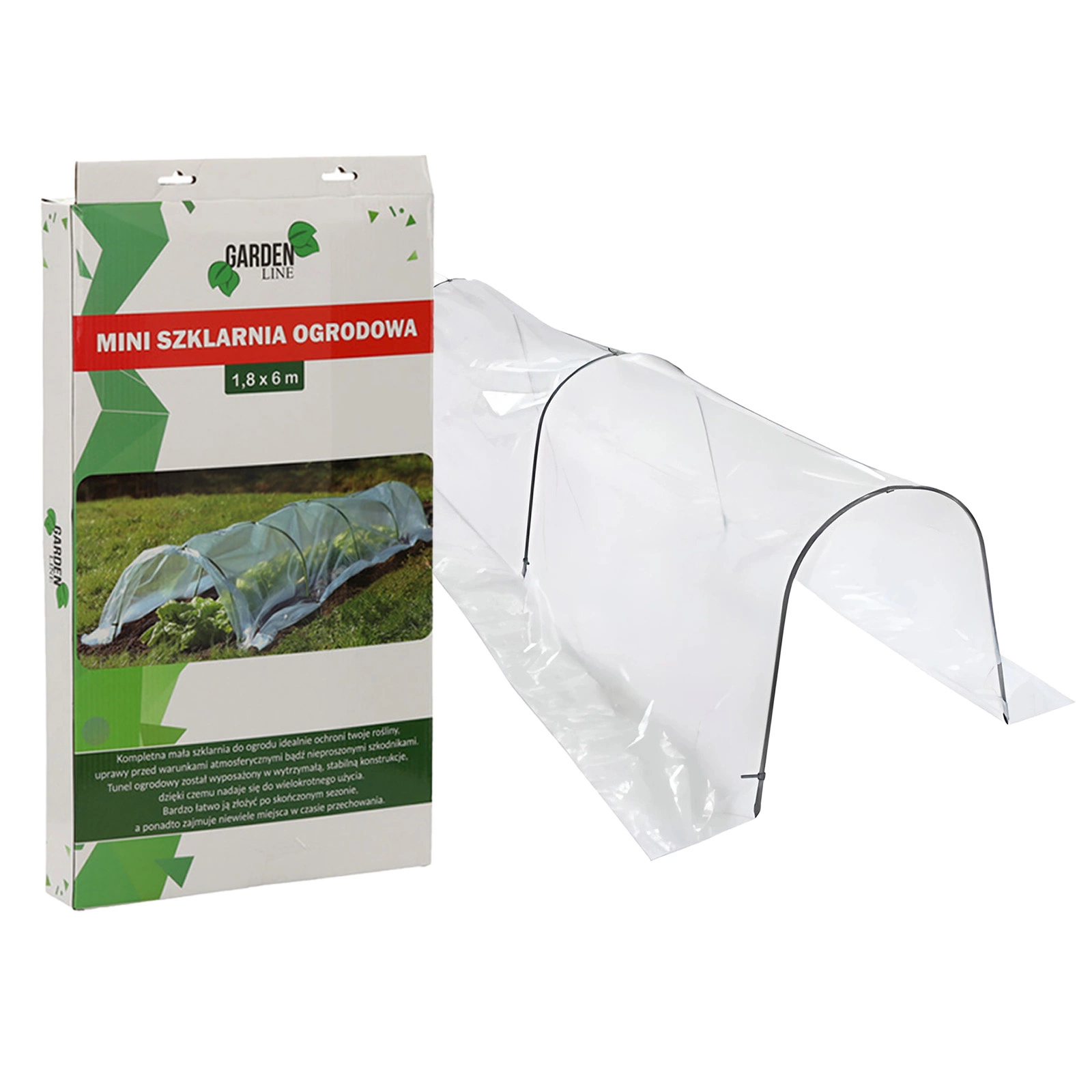 Fólie je vyrobena z odolného, ​​pevného a odolného plastu. Snadná a rychlá instalace tunelu umožňuje rychle využívat výhod jeho použití. Tunel je možné demontovat a rostliny ponechat bez krytu. Všechny potřebné prvky obsažené v sadě jsou :