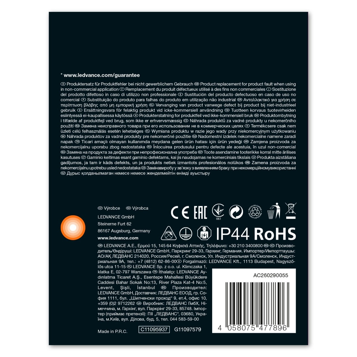 Výrobek splňuje platné evropské normy. Lampy je vybaven energeticky úsporným světelným zdrojem LED o velikosti 9 W, teplá barva SVĚTLA s teplotou barev 3000K což umožňuje světelný tok o hodnotě 600 lm.