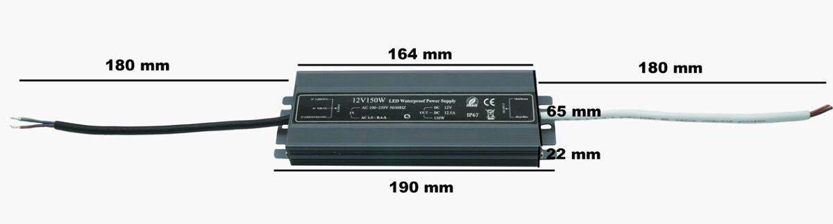 Napájení LED pásků 12V 150W 12,5A vodotěsné IP67
