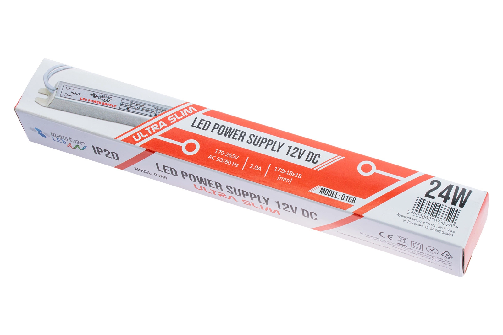 Napájecí jednotka s pevným napětím v řadě SLIM je napájecí jednotka ve štíhlém pouzdře, která splní i ty nejnáročnější požadavky. Díky své malé velikosti 175 x 18 x 18 mm snadno se vejde do míst, jako je nábytek nebo vestavěný nábytek. Je navržen pro práci s s LED osvětlením