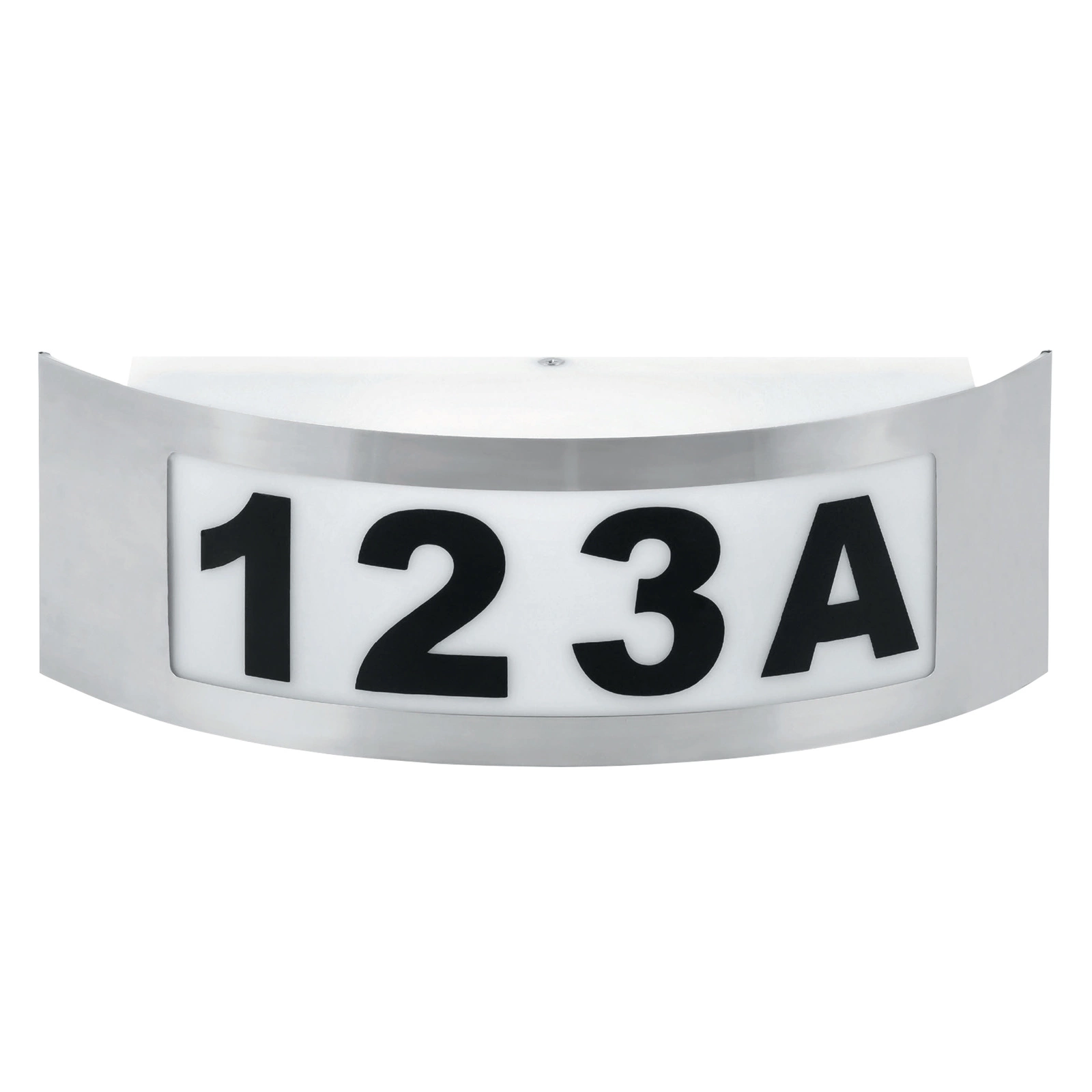 Zahradní lampa - stropní svítidlo v podobě osvětlené kovové destičky s domovním číslem Polux ve stříbrné barvě (černá, včetně nalepených čísel) skvěle poslouží jako praktické osvětlení vašeho domovního čísla a zajistí, že nikdo nebude mít problém najít vaši adresu.. Moderní fasádní stropní svítidlo se zvýšenou třídou těsnosti IP44 , vyrobené z nerezové oceli, ideální pro venkovní osvětlení. Stropní svítidlo je uzpůsobeno pro montáž žárovky s paticí E27 (žárovka není součástí balení) o maximálním výkonu 14W LED. Snadná výměna žárovky a profesionální zpracování výrobku zajišťují životnost po mnoho let.