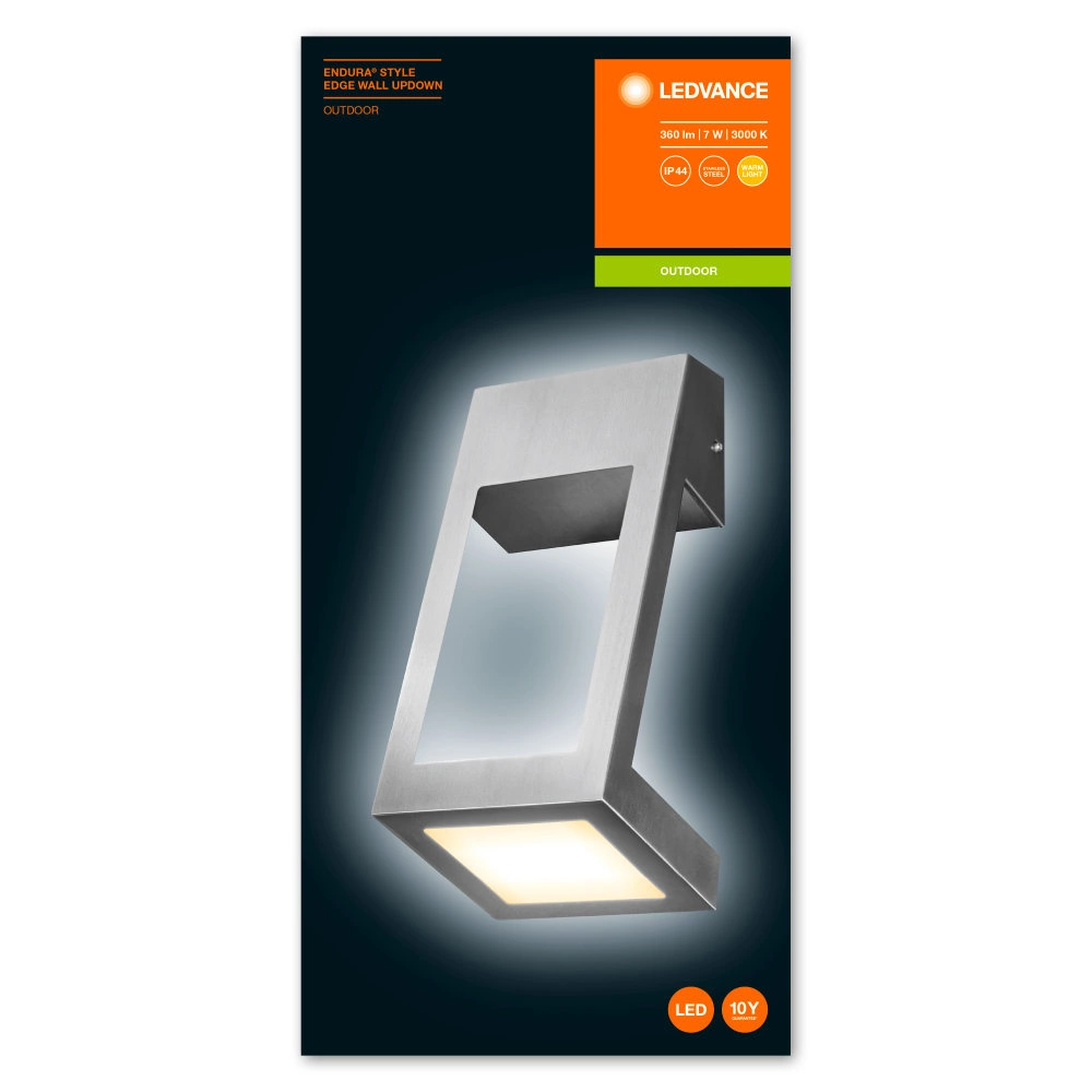 Nástěnné svítidlo ENDURA STYLE EDGE je inovativní zařízení pro venkovní použití. Použité materiály poskytují velmi dobrou ochranu proti povětrnostním vlivům ( IP44 ), takže je odolný proti stříkající vodě z jakéhokoli směru.