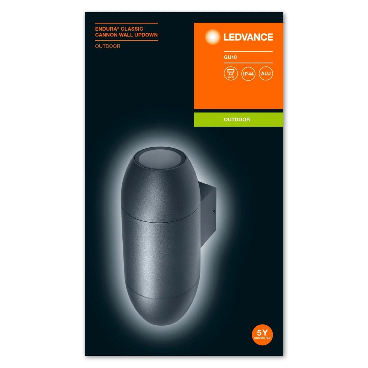 Fasádní nástěnné svítidlo CANNON UPDOWN ze série Endura od známé a na trhu s osvětlením renomované společnosti LEDVANCE je vyrobeno z vysoce kvalitního tmavě šedého hliníku .
