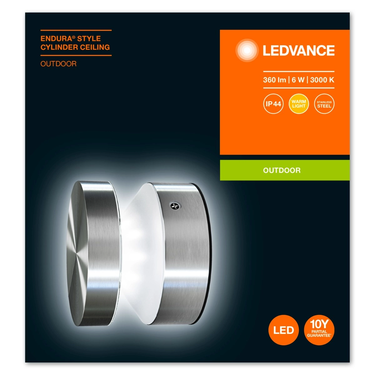 Fasádní nástěnné svítidlo Cylinder ze série Endura od známé a na trhu s osvětlením renomované společnosti LEDVANCE je vyrobeno z vysoce kvalitní stříbrné nerezové oceli .