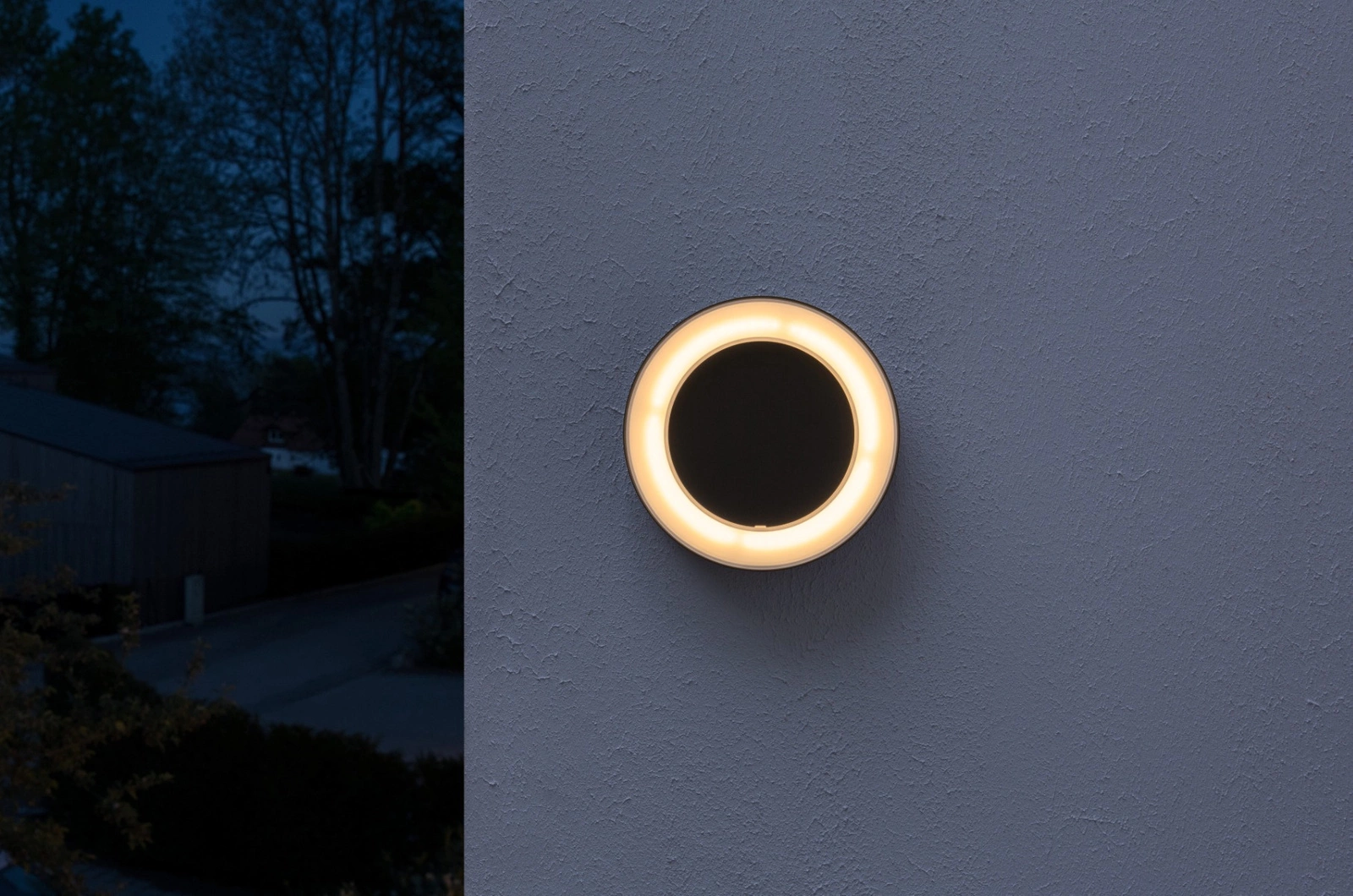 Fasádní nástěnné svítidlo STYLE RING ze série ENDURA známé a na trhu osvětlení renomované značky LEDVANCE je vyrobeno z vysoce kvalitního tmavě šedého hliníku .