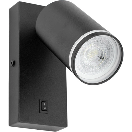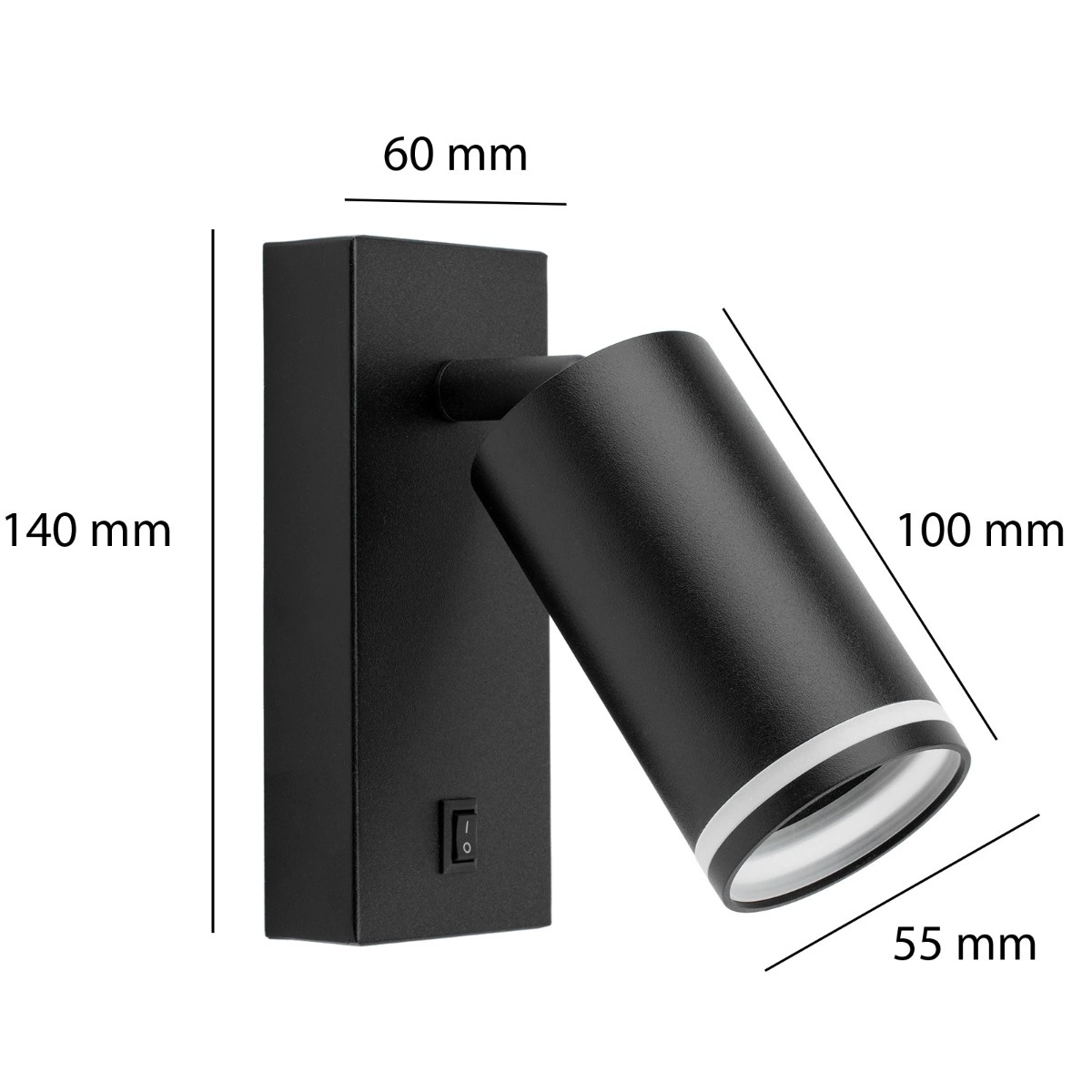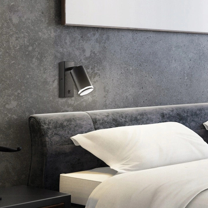 Černé nástěnné svítidlo s výměnným světelným zdrojem s paticí GU10 . Lampa je vyrobena z vysoké oceli, hliníku a akrylu, má ozdobný kroužek . Lampa má spínač na čtení , který umožňuje snadné rozsvícení světla.
