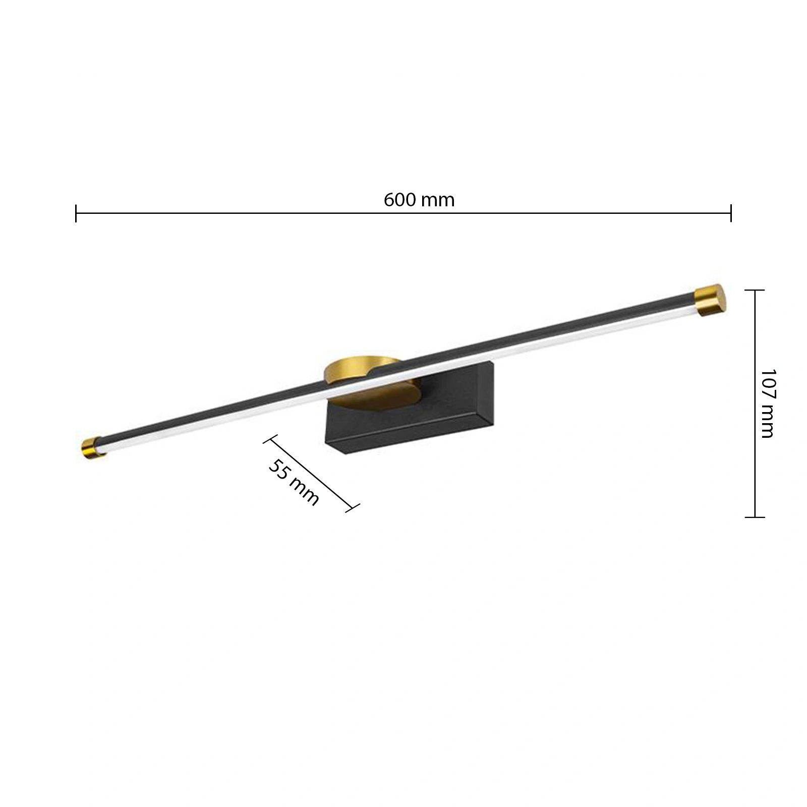 Nástěnné svítidlo LED Nástěnné svítidlo nad zrcadlo 12W 1440lm 4000K 140° Černá zlatá 60cm Santo Masterled