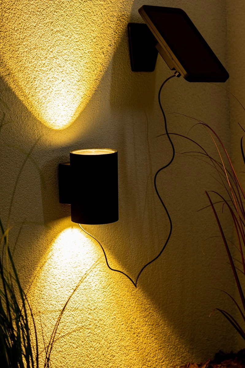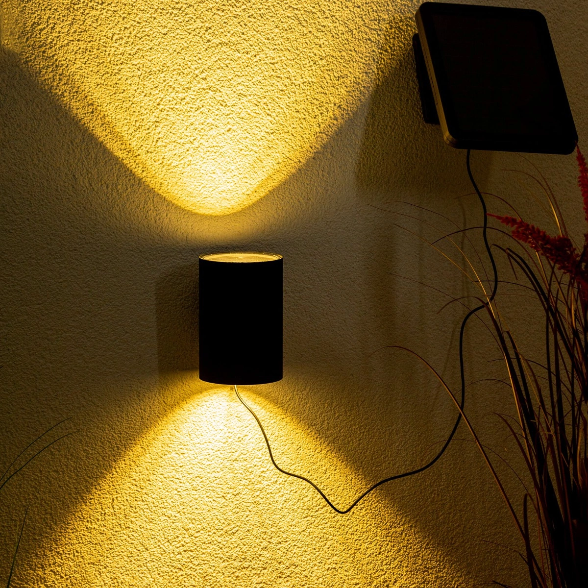 Černá solární nástěnná lampa poslouží jako dekorativní i praktické osvětlení vaší zahrady. Dokonale podtrhne atmosféru zahrady a vnese do okolí domu jedinečnou atmosféru, díky mimořádné hře světla a stínu. Zahradní lampa svítí shora i zespodu a vytváří tak nádherný světelný efekt.