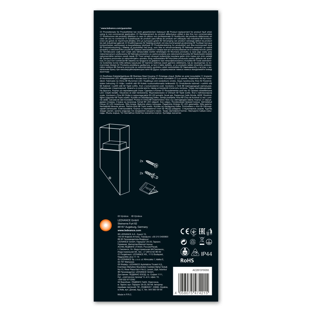 MODERNÍ nástěnné svítidlo z vysoce kvalitních materiálů oceli a akrylového skla (PMMA) značky Ledvance, na adrese ocel, který se vyznačuje pěkným designem a vysokou funkčností. Díky montážním prvkům, které jsou součástí sady, je instalace rychlá a snadná. Na stránkách zahradní nástěnná lampa nás chrání ve tmě zabezpečení.