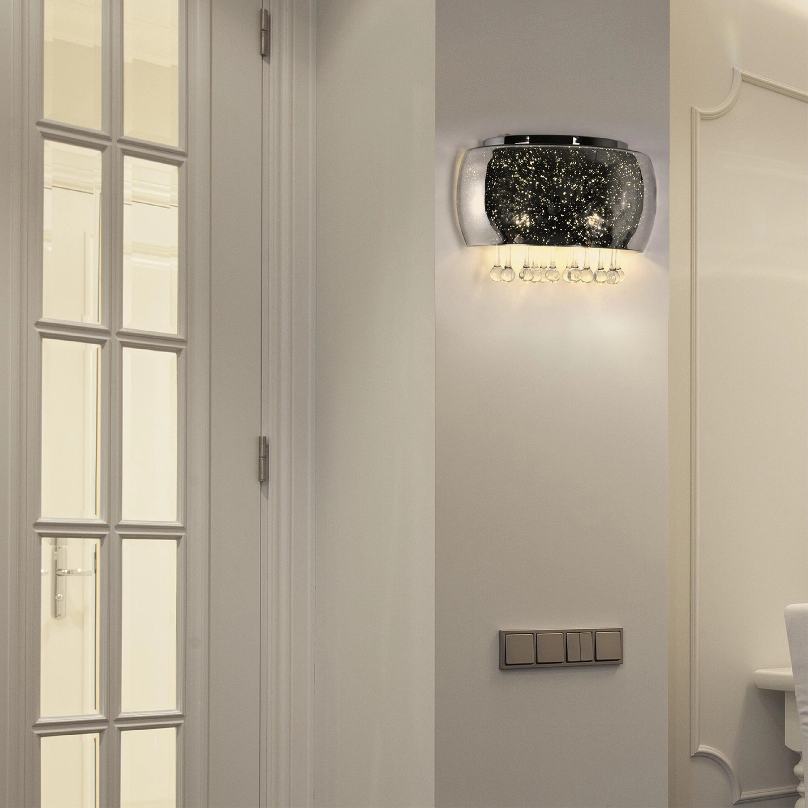 Nástěnné svítidlo JULIA značky GOLDLUX (Polux) v chromu v elegantním stylu se dvěma světelnými body, zavěšené na viditelném místě, bude poutavou dekorací, hodí se i do komerčních prostor, jako je bar nebo restaurace s atmosférou , stejně jako perfektní doplněk do moderních, módních či tradičních interiérů, dodá kouzlo a změní jejich vzhled. Tato lampa je perfektním produktem pro každého, kdo si chce vyzdobit svůj byt jedinečným a netradičním doplňkem, který podtrhne originální a avantgardní design interiéru.