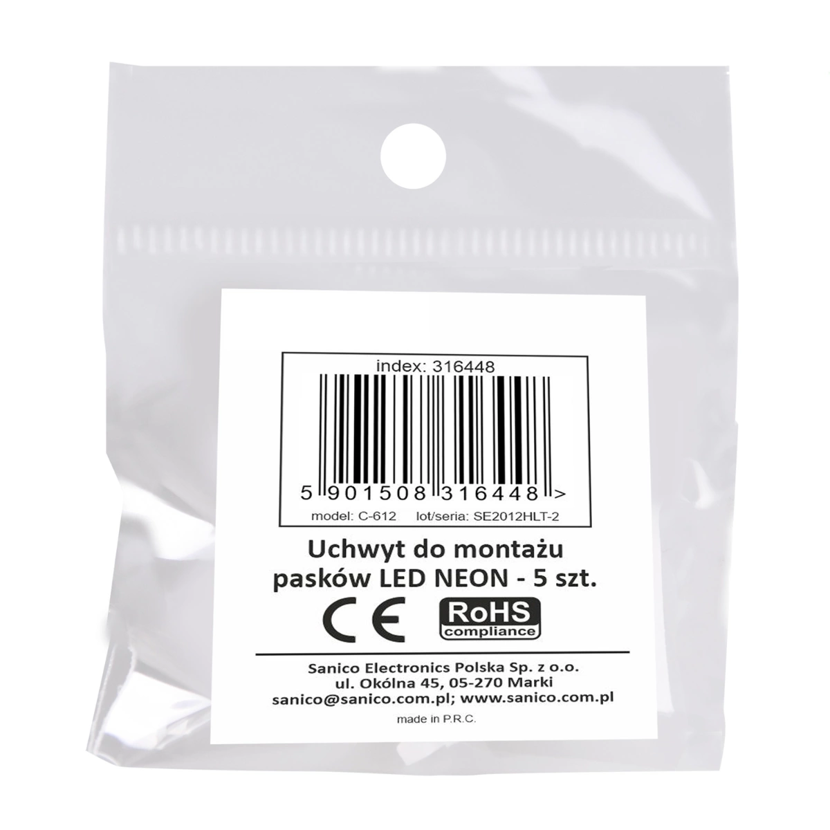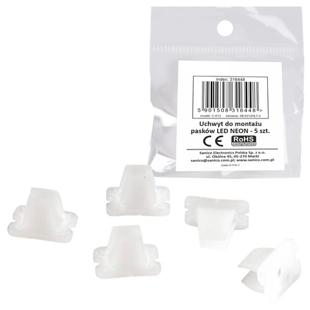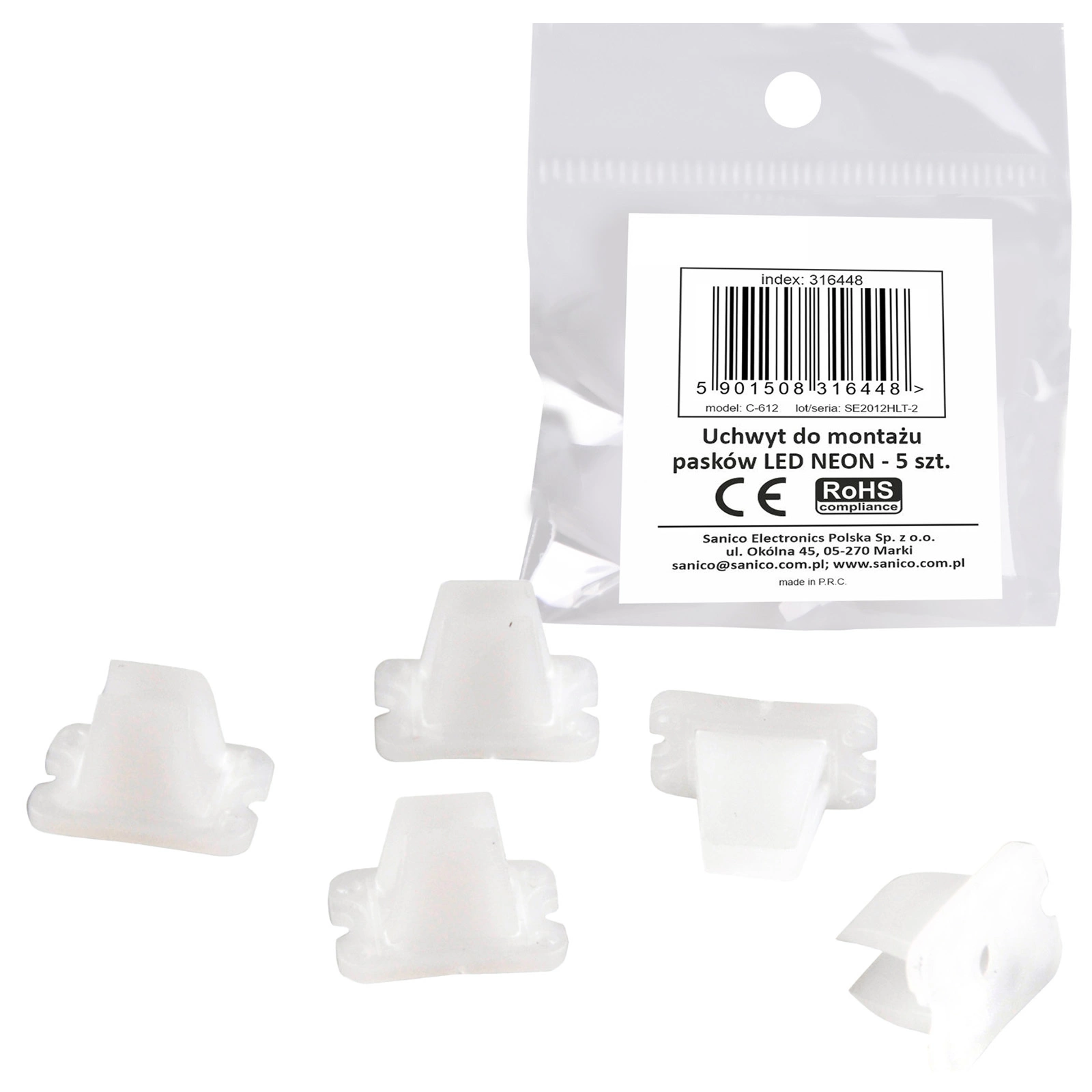 Sada 5 kusů montážních držáků určených pro montáž LED pásků NEON 2m a 5m.