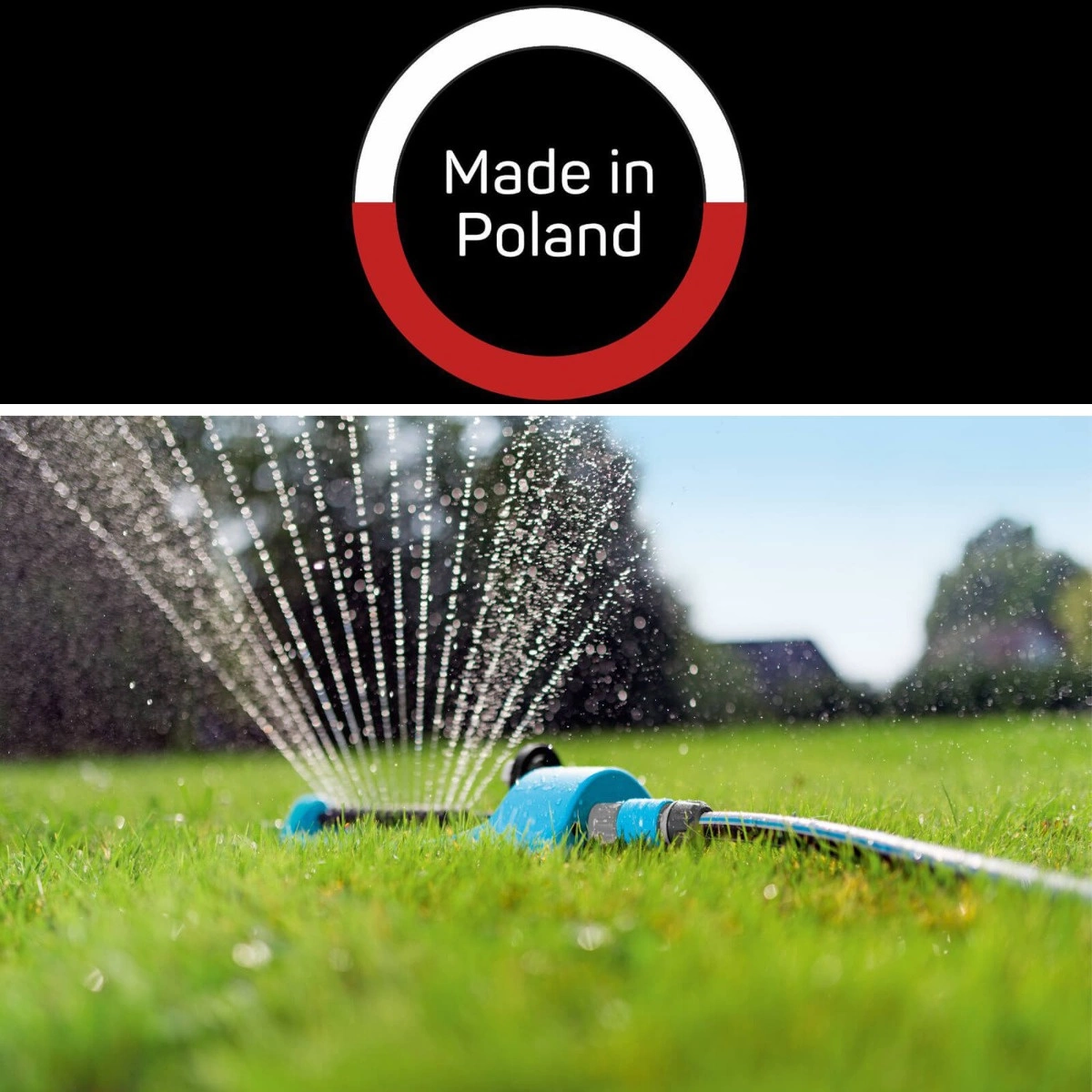Vyrobeno z vysoce kvalitního plastu oscilační zahradní zavlažovač je vybaven 15 trysek a to vše na stabilním základě. Postřikovač má plynule nastavitelný v rozsahu zavlažovacího pole: to usnadňuje nastavení zavlažované plochy. V letním období je jednou z nejdůležitějších prací na zahradě správné zalévání rostlin. Ideální pro zavlažování trávníky, květinové záhony nebo nízké keře. S ním můžete ušetřit čas při zalévání rostlin tradičním způsobem pomocí hadice, navíc je výhodou jeho mobilita, kdykoli můžete zavlažovač přemístit na jiné místo a začít zalévat jinou část zahrady, trávník.