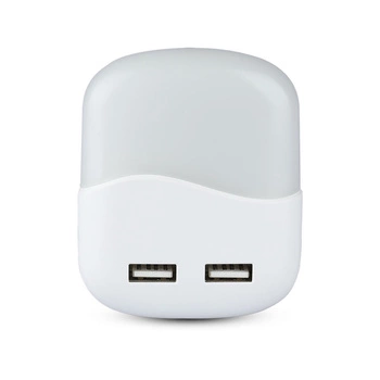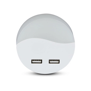 Orientační lampa LED noční lampa 0.45W 3000K Se soumrakovým senzorem a USB portem Kulatý Bílý Samsung Chip VT-84 V-TAC