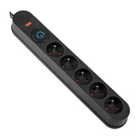 Dočasně nedostupnéProdlužovací kabel s přepěťovou ochranou 1,5 m 5GN černý Napájecí lišta + vypínač