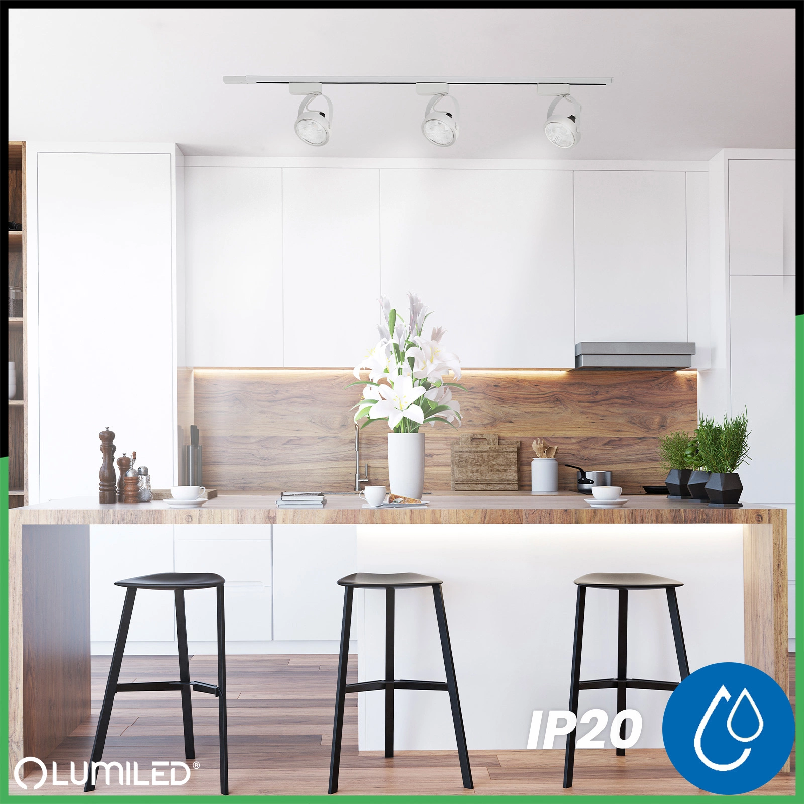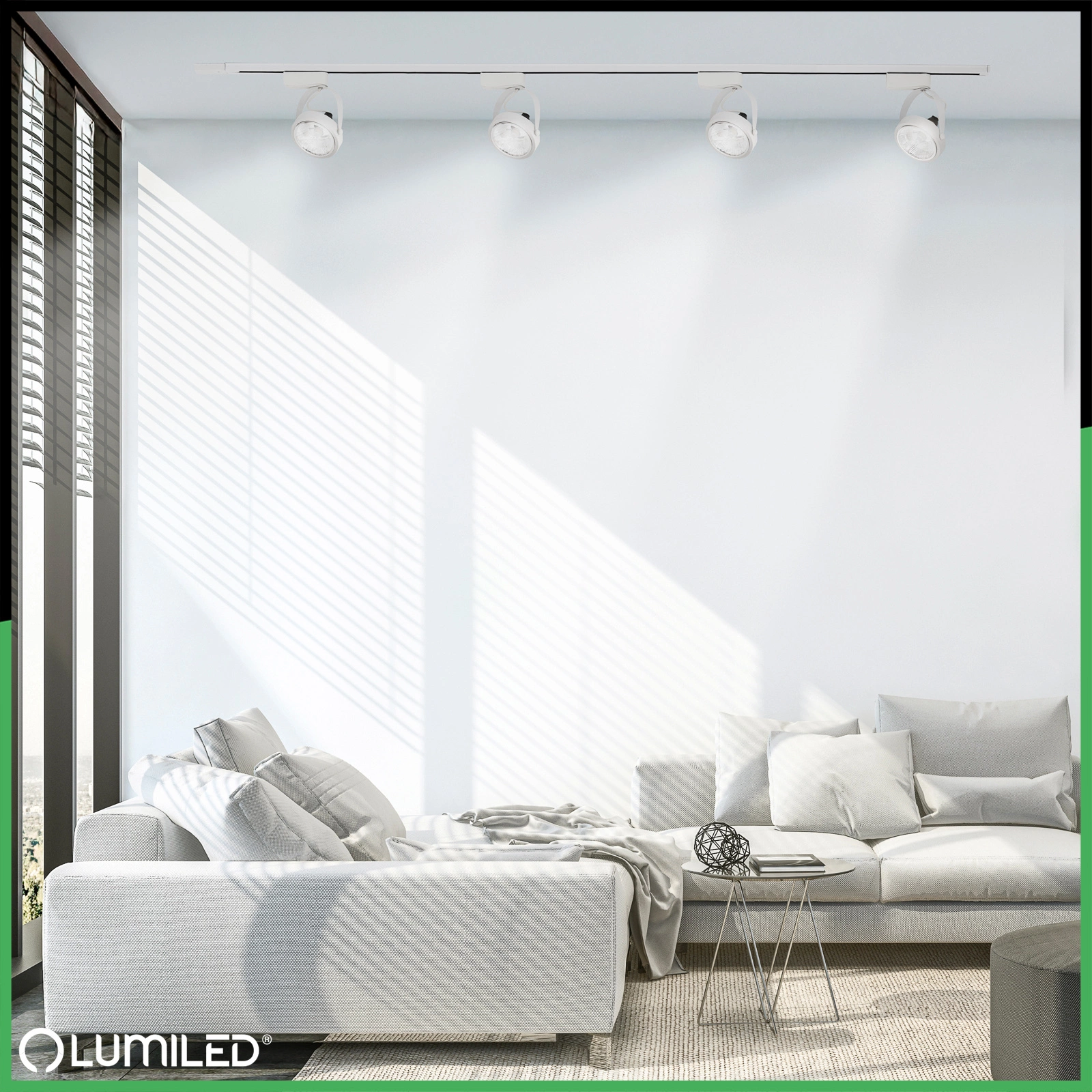 Sada: Osvětlovací lišta 1,5m + Tři reflektory na kolejích v bílé barvě, vyrobené z vysoce kvalitního hliníkové slitiny známé a renomované značky osvětlení Lumiled®, je kombinací minimalismu a funkčnosti, která se hodí do každé místnosti.