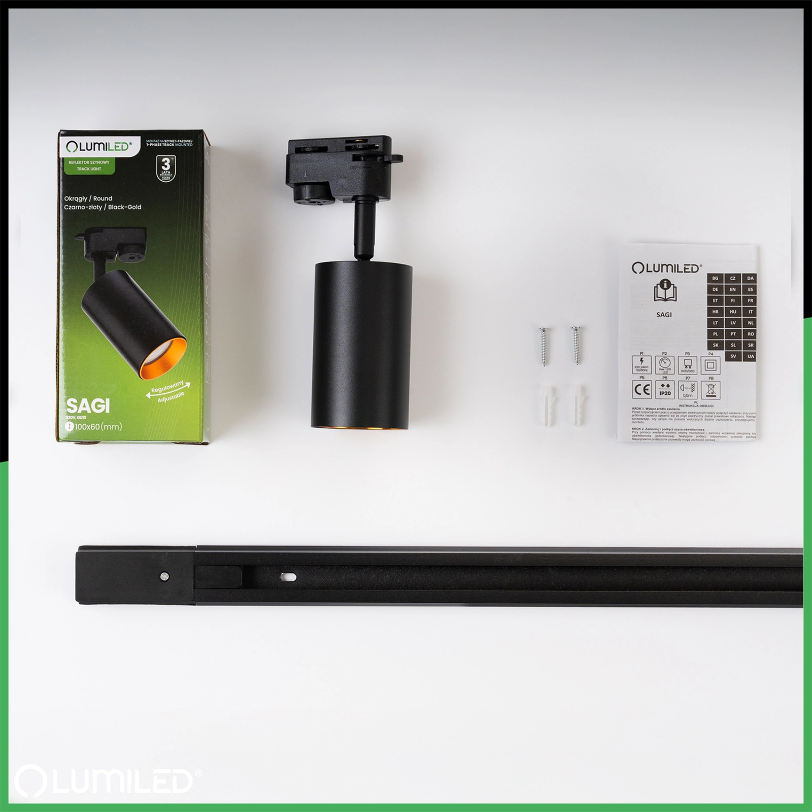 Sada osvětlovacích kolejnic 1,5 m kolejnice + 3x kolejnicové světlo SAGI GU10 Black Gold LUMILED