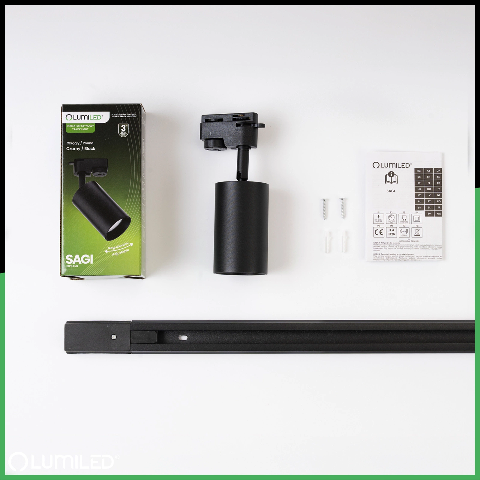 Sada osvětlovacích kolejnic 1m kolejnice + 2x SAGI GU10 Track Spotlight Black LUMILED