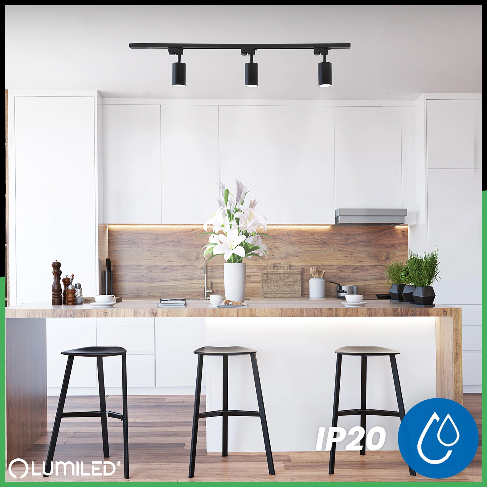 Sada, 2m osvětlovací pás + čtyři černé lištové reflektory, vyrobeno z kvalitní hliníkové slitiny. Sada je určena pro povrchovou montáž. Výhodou přiložených reflektorů je možnost instalace libovolné žárovky se závitem GU10 s maximálním výkonem nepřesahujícím 30W. Díky použití kolejnic můžeme ovládat osvětlení v místnosti v závislosti na našich aktuálních predispozicích.