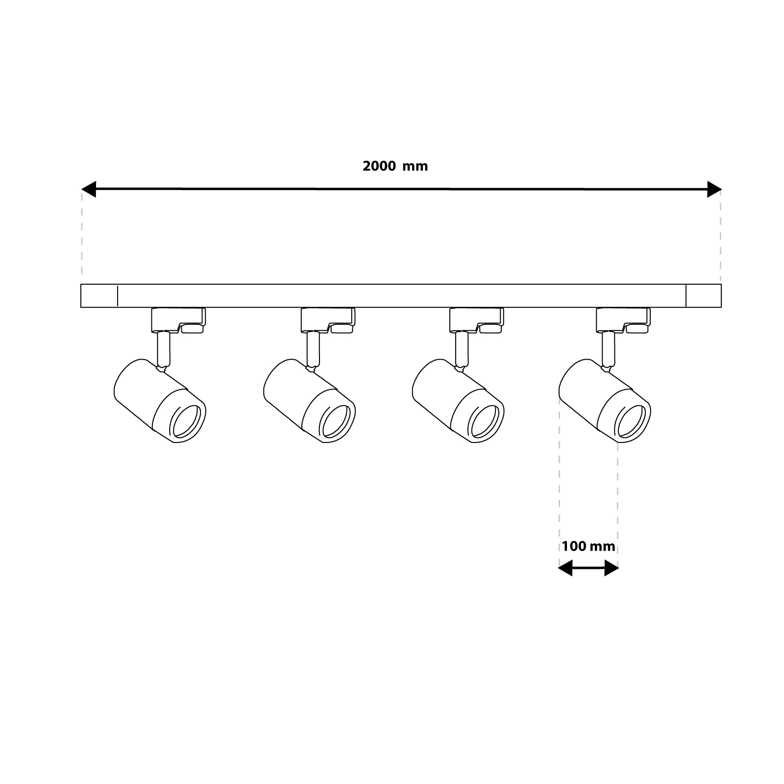 Osvětlovací lišta 2m + 4x reflektor lištový, GU10 Černá Zlatý SAGI LUMILED