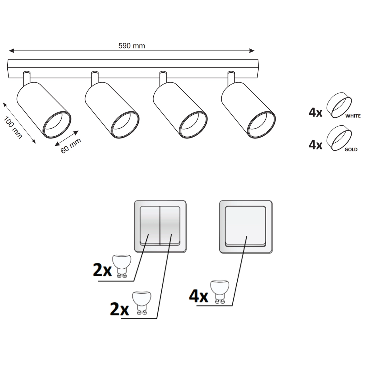 Páskové svítidlo Stropní a nástěnné LED svítidlo 4 x GU10 MARIBEL White GOLDLUX (Polux)