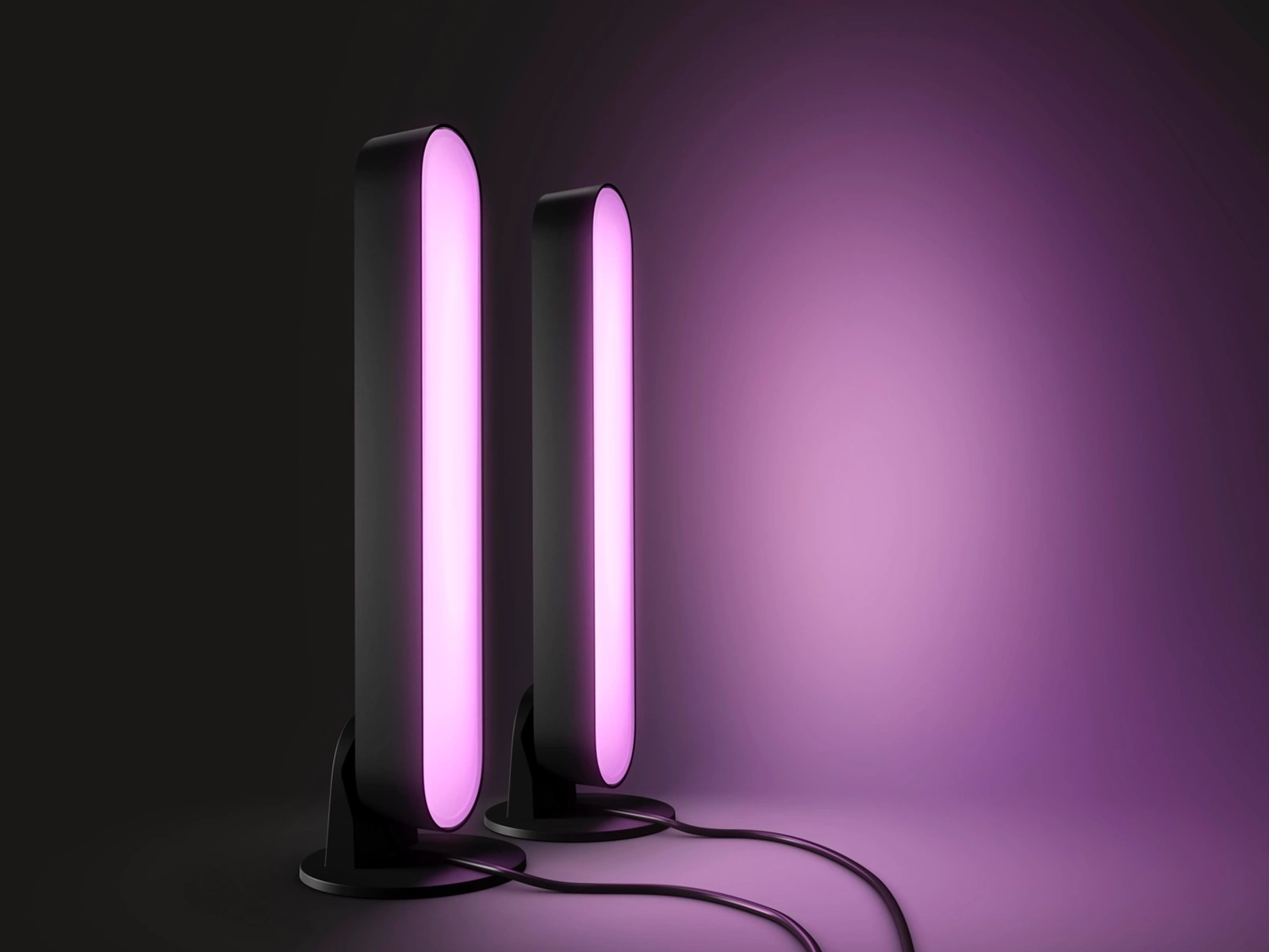 Podlouhlé svítidlo Philips Hue Play lze připevnit na zeď nebo televizor, položit naplocho na jakýkoli povrch nebo postavit nastojato. Tento univerzální inteligentní světelný zdroj dokonale podtrhne charakter všech obývacích pokojů, zábavních prostor nebo multimediálních místností.
