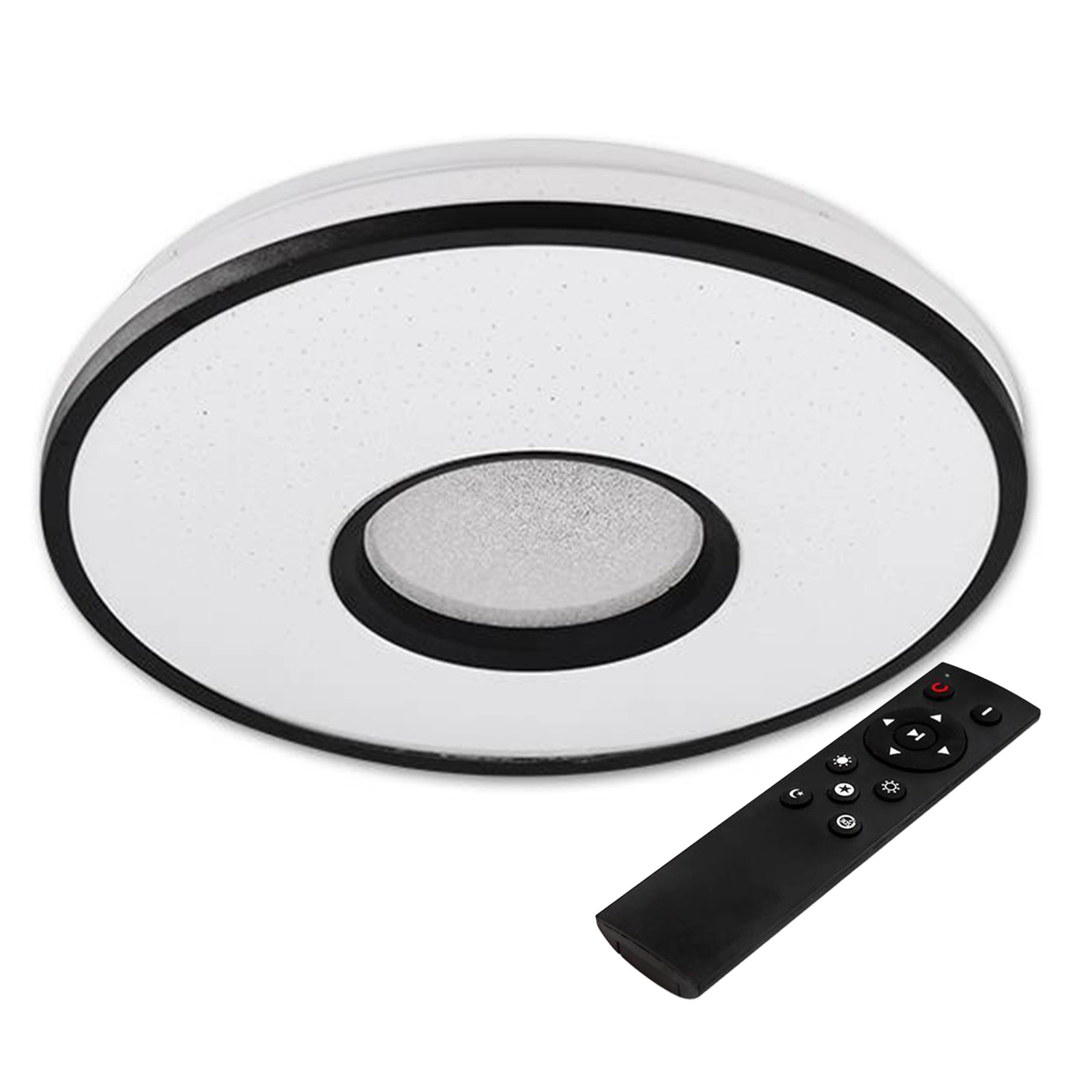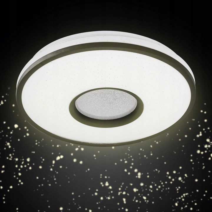 Moderní stropní LED svítidlo o výkonu 24W. Je osazena 40 SMD 2835 LED, které mají možnost stmívání a změny barvy světla. K regulaci provozu zařízení slouží vyhrazený dálkový ovladač (součástí balení) , který nám umožňuje snížit nebo zvýšit intenzitu SVĚTLA nebo změnit jeho barvu z teplé na neutrální nebo studenou. Dálkové ovládání funguje rádiem, což znamená, že pro změnu nastavení nemusíme mířit na konkrétní bod.