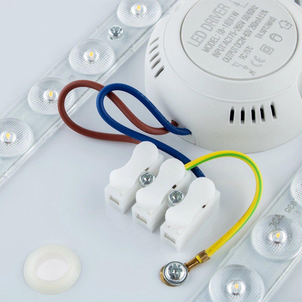 Čtvercový moderní LED nástěnný a stropní plafón, na adrese bílá s chromovaným proužkem. Plafón vyrobený z vysoce kvalitních materiálů se vyznačuje vysokou odolností a kvalitou zpracování s důrazem na nejmenší detail. Základna je vyrobena z oceli , zatímco plastový difuzor. Lampy s výkonem 18W, světelný tok 1260lm a stupeň ochrany IP44.