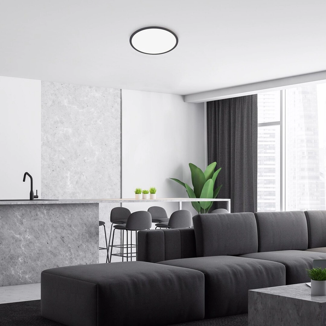 Stropní svítidlo Plafond LED 15W 1200lm 3000K je moderní řešení osvětlení, které dokonale vyhovuje potřebám moderních interiérů. Model Ezio 71155 od renomované značky Rabalux se vyznačuje minimalistickým designem a elegantní černou barvou, díky čemuž se skvěle hodí jak do klasických, tak do moderních interiérů. S příkonem 15 W a světelným tokem 1200 lm poskytuje svítidlo dostatečné osvětlení v místnostech s různými funkcemi. Světlo o teplotě 3000 K vytváří útulnou a relaxační atmosféru, která je ideální pro obývací pokoj, ložnici nebo kuchyň.