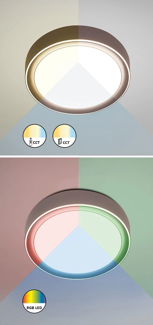 Toto inovativní stropní svítidlo je vybaveno funkcemi CCT a RGB, které umožňují vybrat barvu světla z široké palety barev, a také možností stmívání, díky níž máte plnou kontrolu nad úrovní jasu. Jako bonus je k dispozici vestavěný časovač, který umožňuje automatické vypnutí nebo zapnutí osvětlení ve zvolený čas. Všechny funkce lampy lze snadno ovládat pomocí pohodlného dálkového ovladače. S životností odhadovanou na 30 000 hodin se jedná o investici, která vydrží dlouhá léta a jistě splní očekávání i těch nejnáročnějších uživatelů, kteří chtějí kombinaci pohodlí a moderního designu.
