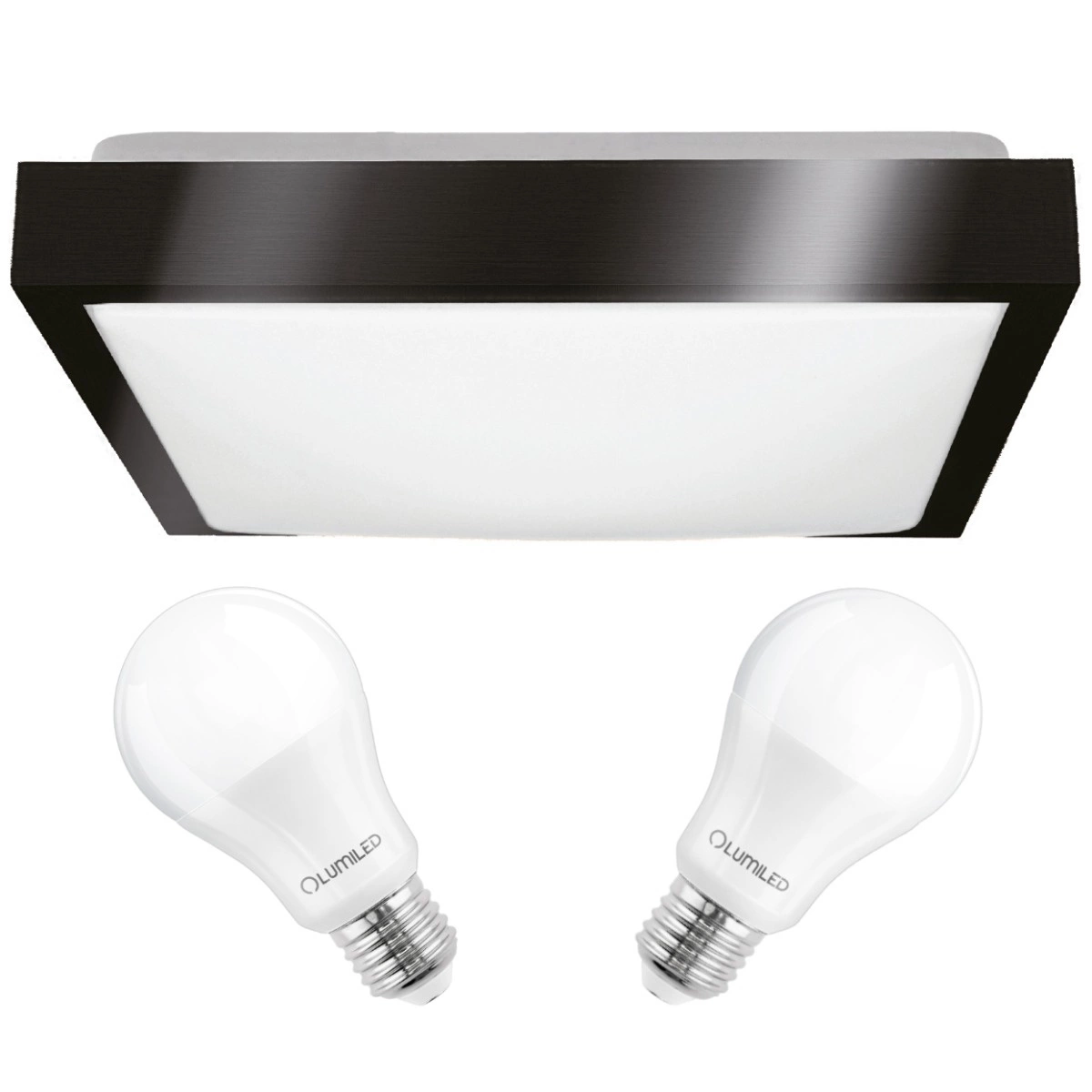 Plafond LED stropní svítidlo 30 cm 2x E27 Black Square + 2x LED Lumiled Žárovka
