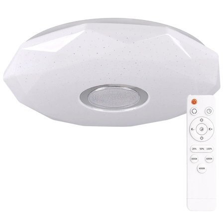 LED plafond značky Polux, s moderním vzhledem, který připomíná diamant, je vysoce kvalitní světelný zdroj LED. Nepochybnou výhodou tohoto neobvyklého stropního svítidla je to, že umožňuje snadnou kontrolu dálkovým ovládáním. Kulatý plafón má integrovaný zdroj světla LED, který vyzařuje světlo o hodnotě 24W, světelný tok 2040lma barevnou teplotou v rozmezí od 3000K až 6500K. To nám umožňuje snadno nastavit světlo vyzařované stropní svítidlo našim potřebám a bez přesunu z naší lokality. Teplé bílé světlo nás v bytě uvolní, zatímco studené světlo nás povzbudí a dodá energii do práce. LED diody jsou ukryty pod mléčným difuzorem diamantové lampy, který vrhá měkké odlesky a poskytuje rovnoměrně rozptýlené světlo, čímž eliminuje negativní efekt oslnění. Díky robustní a osvědčené konstrukci a vynikajícímu poměru cena/kvalita je prezentovaný model plafon s dálkovým ovládáním je ideální všude tam, kde je potřeba spolehlivé světlo pro dobrou náladu.