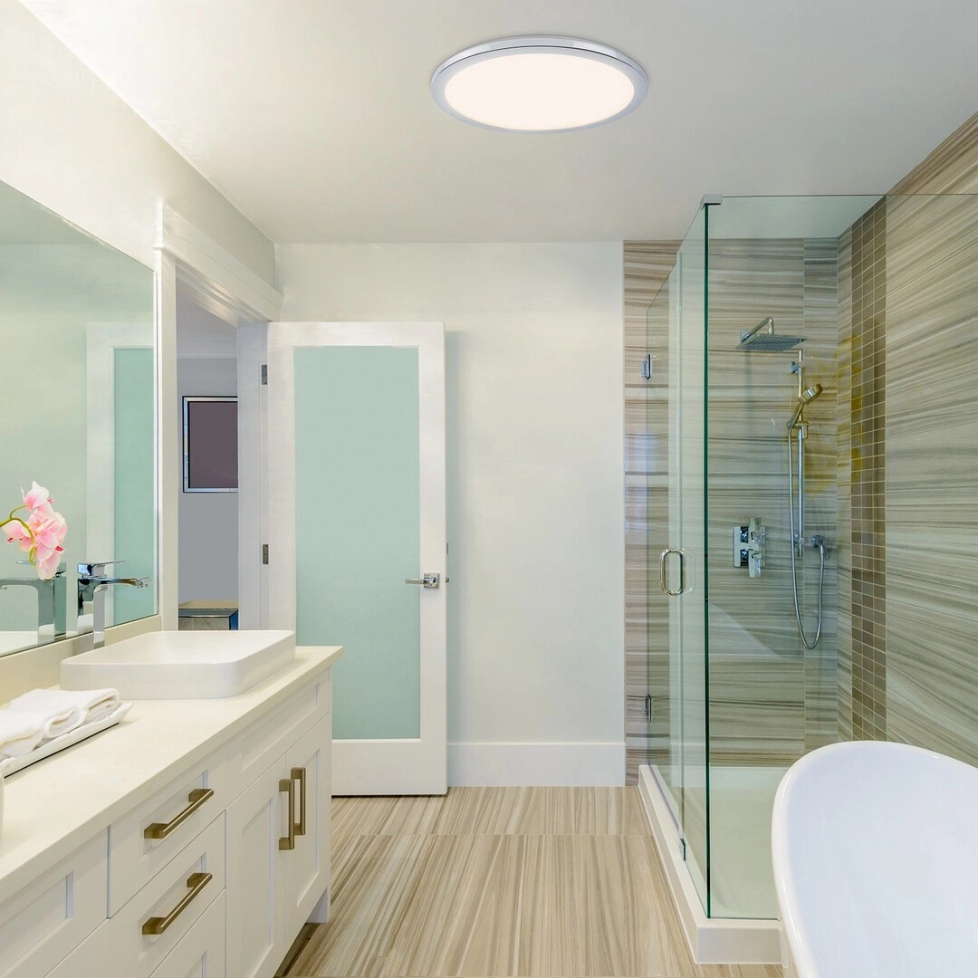 Stropní svítidlo LED Plafond Nástěnné svítidlo do koupelny 24 W je kombinací moderního designu a funkčnosti. Svítidlo se vyznačuje příkonem 24 W a světelným tokem 1500 lm, přičemž nabízí světelnou účinnost 62 lm/W. Světlo s teplotou 3000 K poskytuje příjemnou teplou bílou barvu, která je ideální pro vytvoření relaxační atmosféry. Díky pokročilé funkci stmívání ve 3 stupních si můžete intenzitu osvětlení nastavit podle svých individuálních potřeb.