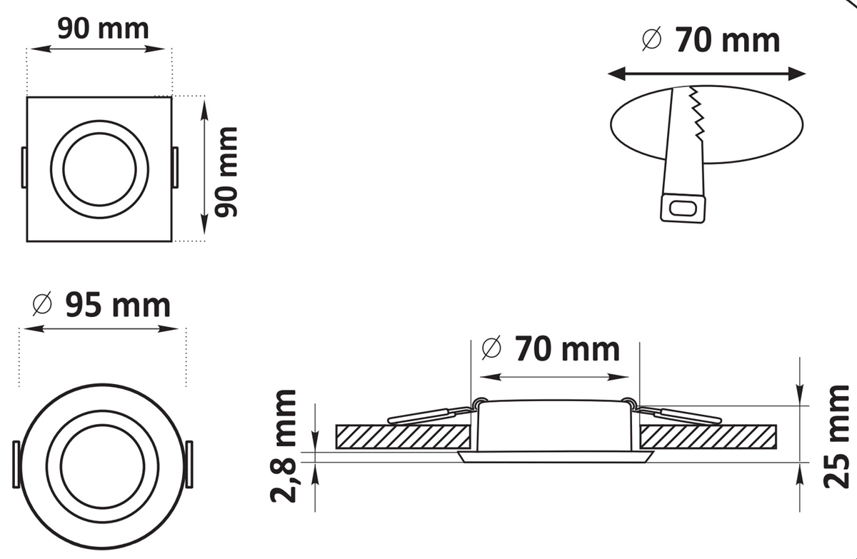 Svítidla jsou navržena pro práci s úspornými světelnými zdroji LED s paticí MR16 o maximálním příkonu 8 W.