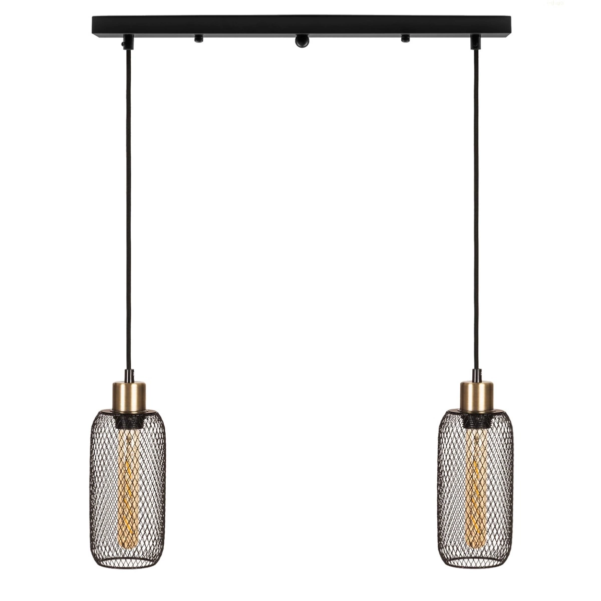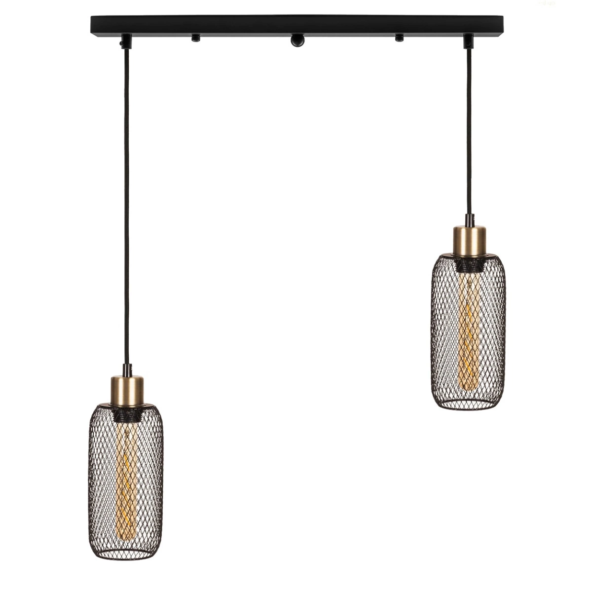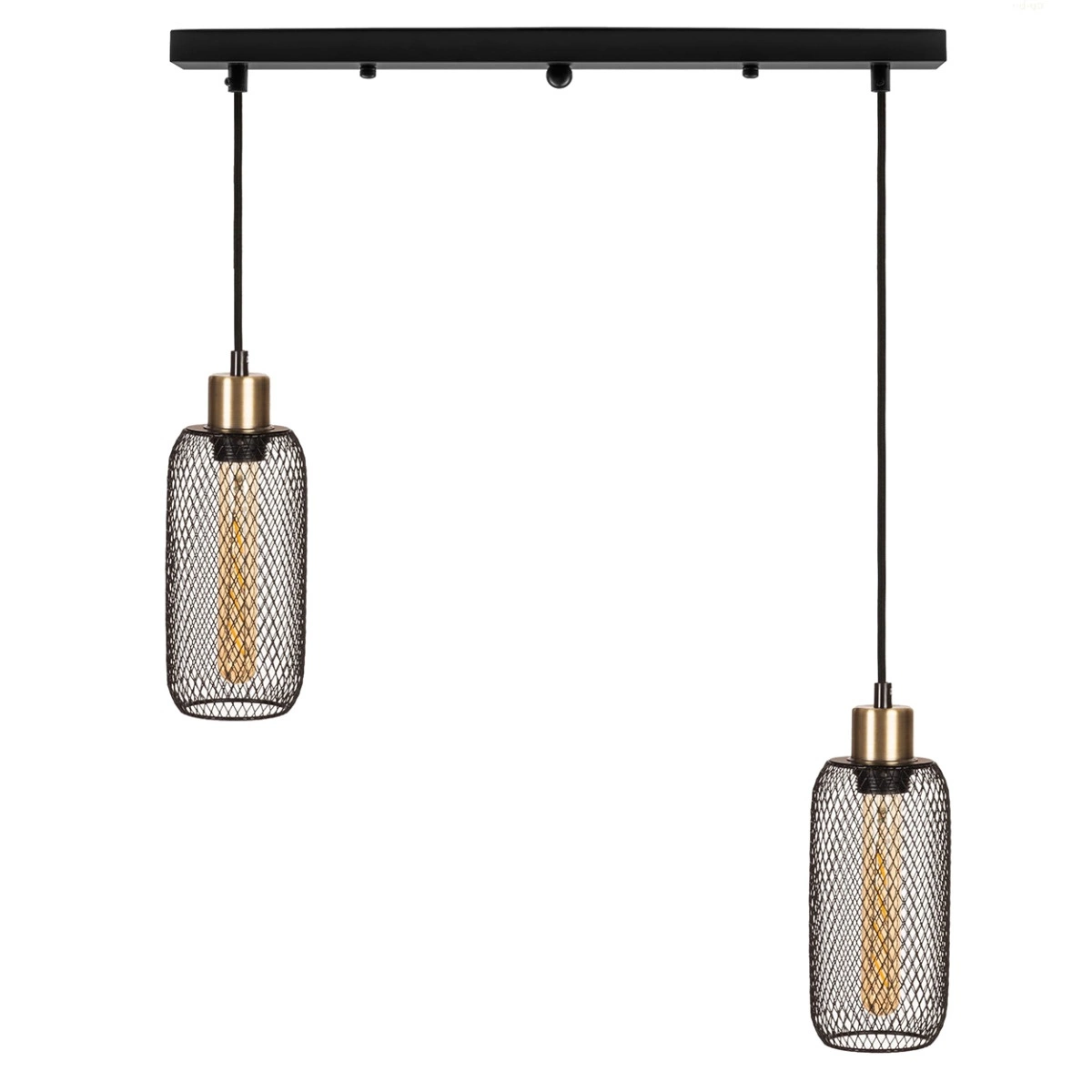 Model Loft závěsná lampa se dvěma světelnými zdroji E27, vyrobenými z kovového pletiva, dodá vašemu interiéru syrový a jedinečný charakter. Lampa byla vyrobena v duchu minimalismu, což dokládá jednoduchý tvar ocelového nosníku a nekomplikovaný design stínidel. Jedinečná kombinace černé barvy s podlouhlým ažurovým tvarem činí celou lampu velmi stylovou a elegantní. Zlaté doplňky dodávají lampě nevšední šmrnc. Vyzařované světlo jedinečným způsobem proniká kovovým opletením a vrhá teplou záři do celé místnosti. Vynikajícího efektu dosáhnete, když do svítidla namontujete dekorativní žárovky s viditelným dekorativním vláknem. Tato lampa je ideálním produktem pro každého, kdo si přeje ozdobit svůj domov jedinečným a netradičním doplňkem, který podtrhne originální a avantgardní design interiéru.