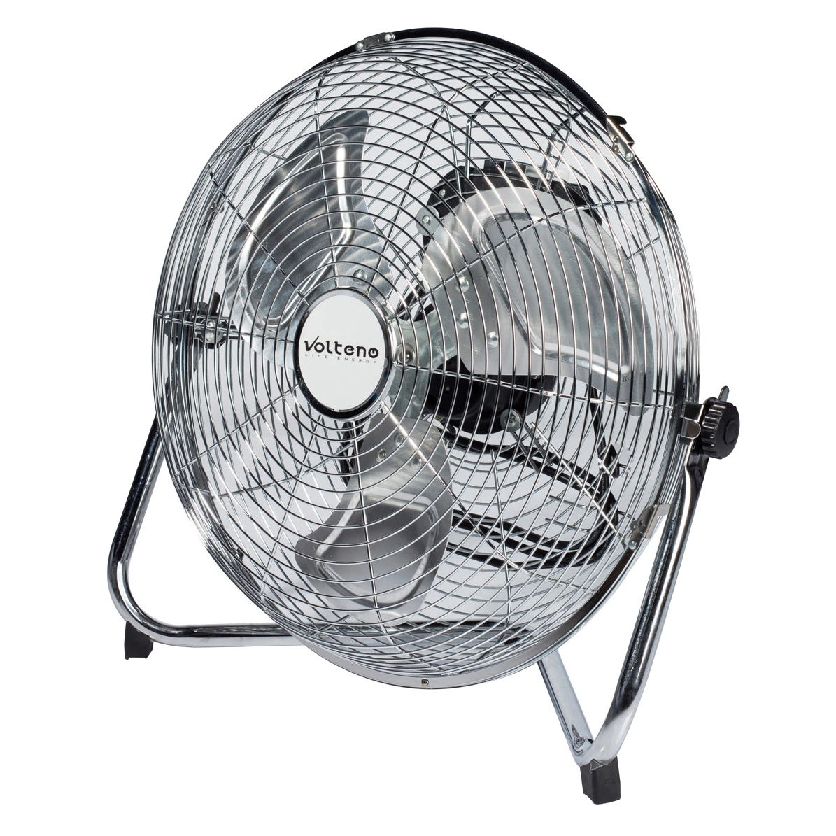 Přenosné podlahové oběhové čerpadlo známé a na trhu s osvětlením renomované značky VOLTENO , chromové , o průměru 35 cm a výkonu 55 W , perfektní do horkých dnů, poskytuje chlazení