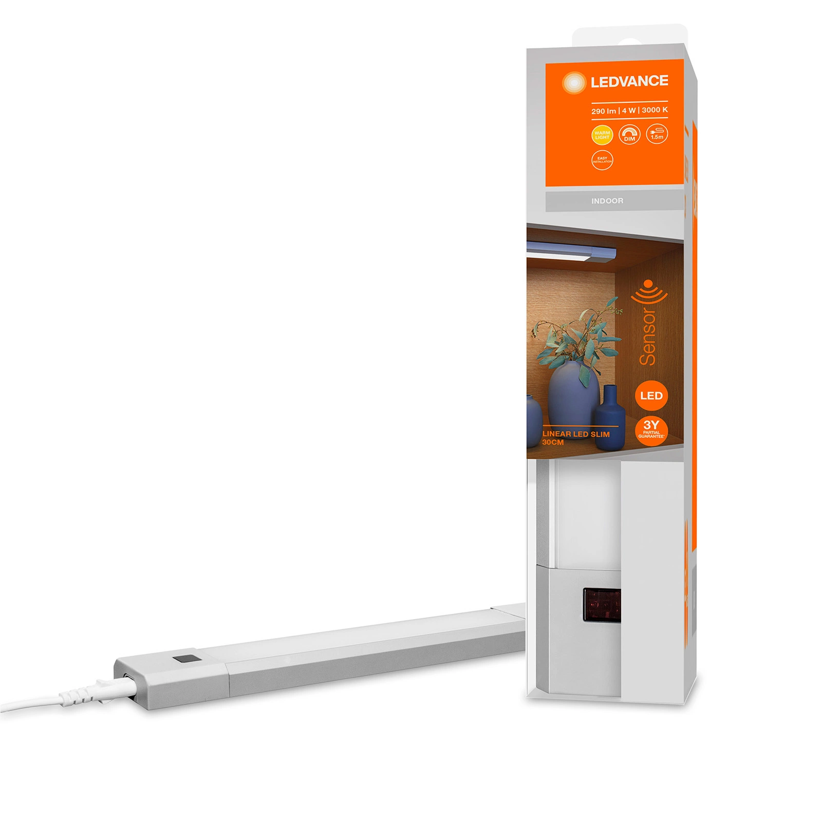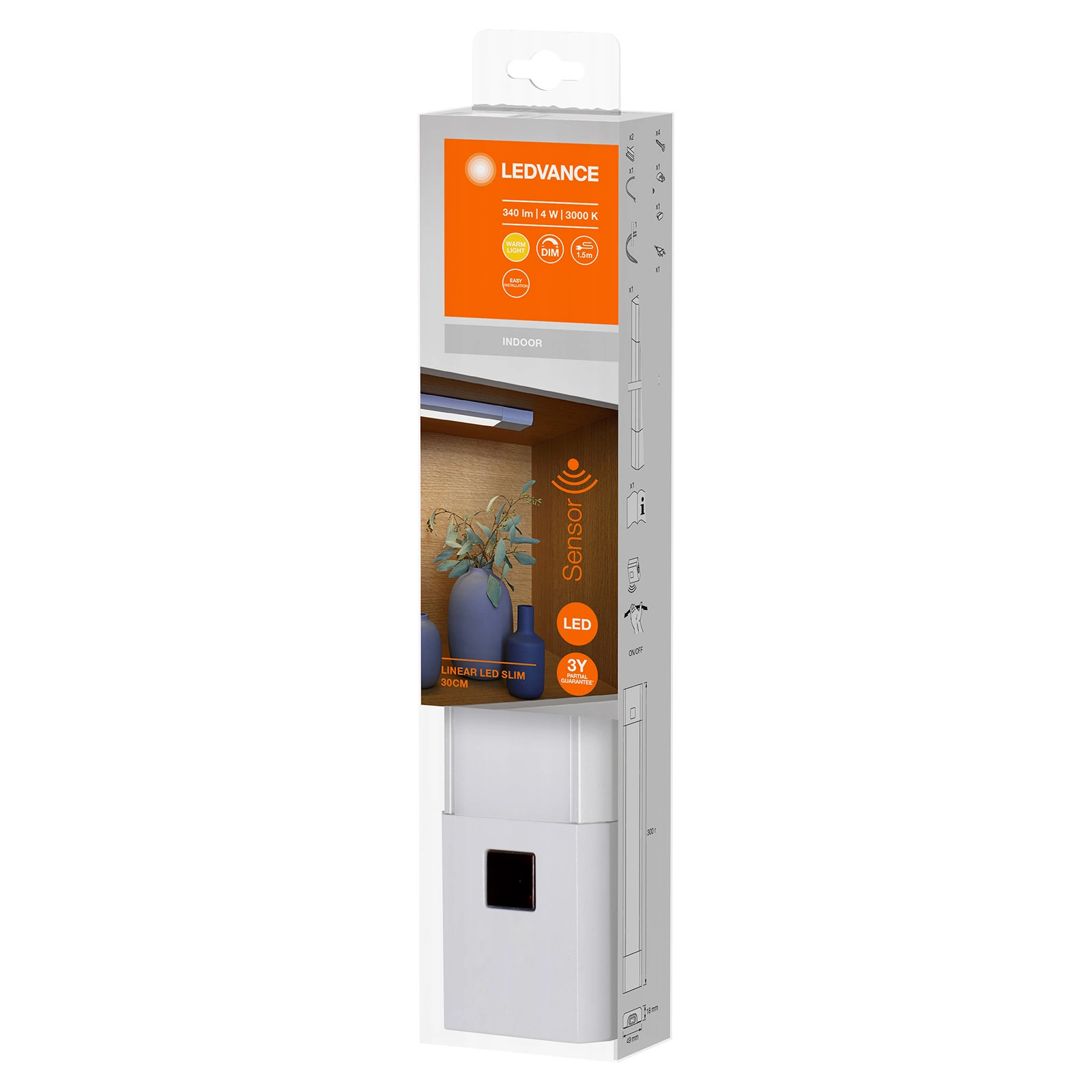 Podskříňová lampa Lineární LED 4W 290lm 3000K Teplá s pohybovým senzorem Stmívatelné 30cm Lineární LED Slim LEDVANCE