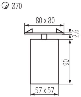 Další výhodou svítidla je úhlové nastavení svítidla v jedné ose . Úhlové nastavení svítidla 90°, svítidlo horizontálně pohyblivé o 340°. Velikost montážního otvoru Ø70mm. Výrobek není vhodný k zakrytí tepelně izolačním materiálem. Nutnost použití samostínících lamp.