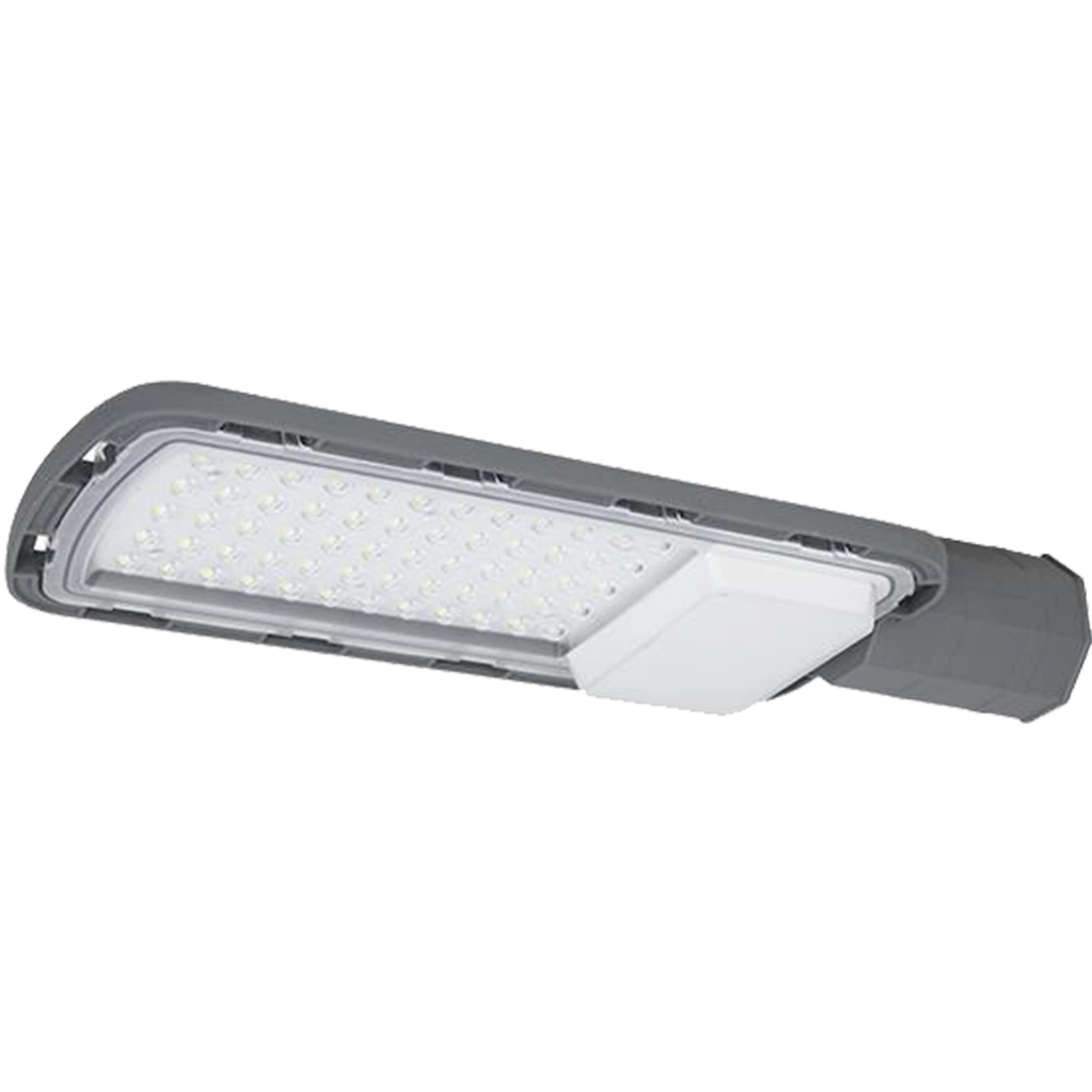 Moderní šedá LED pouliční lampa je dokonalou náhradou za zastaralé pouliční lampy, které spotřebovávaly mnohem více energie. Je vybavena energeticky úspornými LED diodami s max. výkon 150W , vyzařuje barevnou teplotu 5000K a světelný tok je 15000lm.